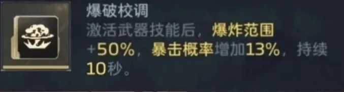 4号插件爆破校调:爆炸范围+50%,暴击率+13%,持续10秒,大幅提升范围伤害和暴击,是输出核心,一定要带。