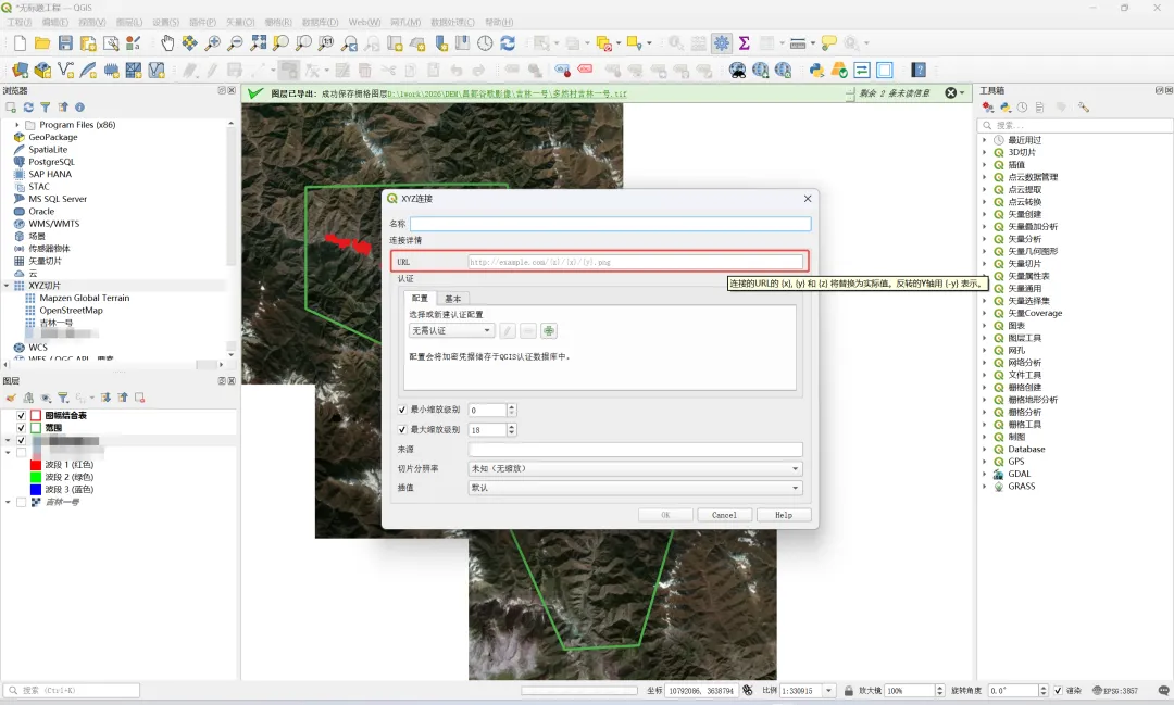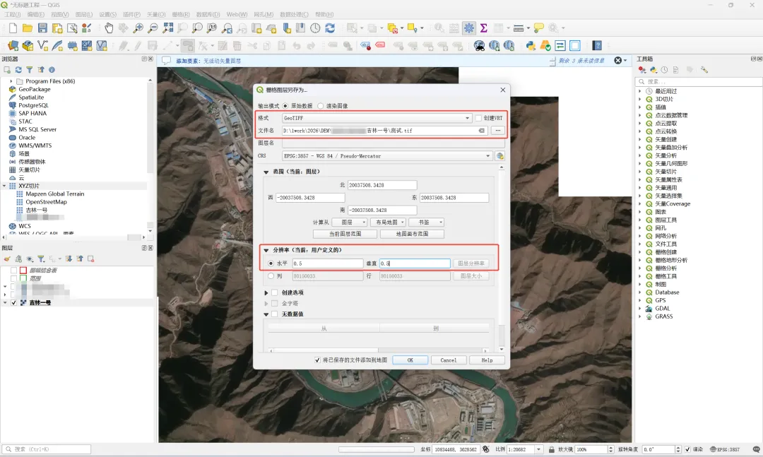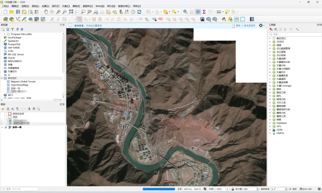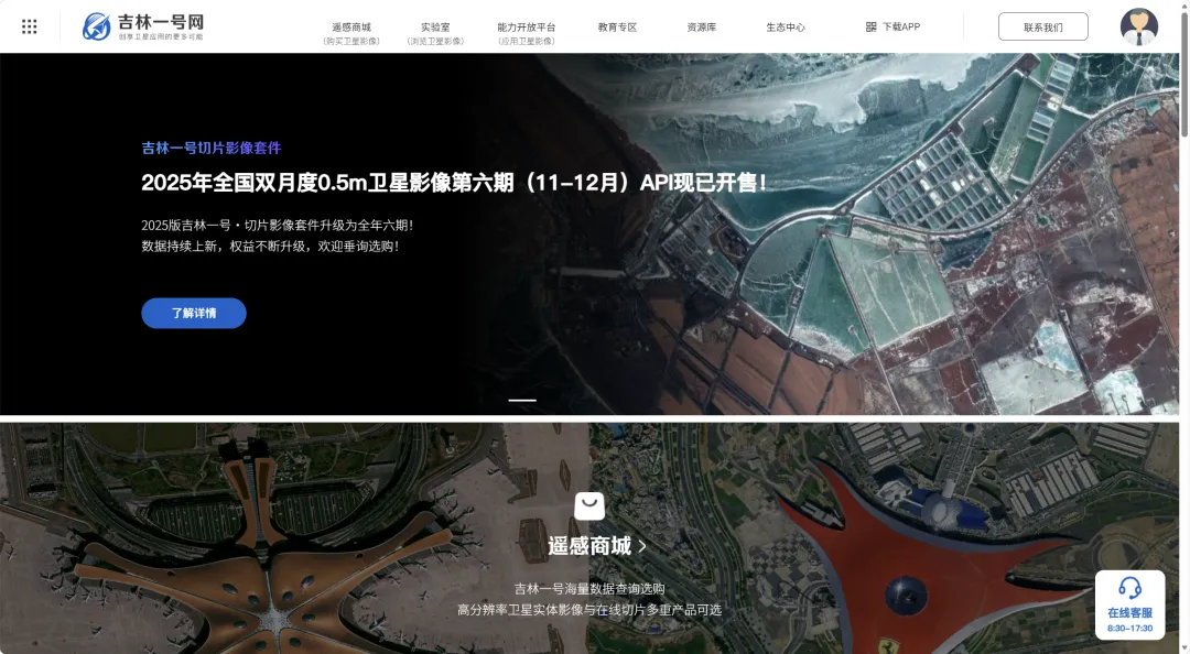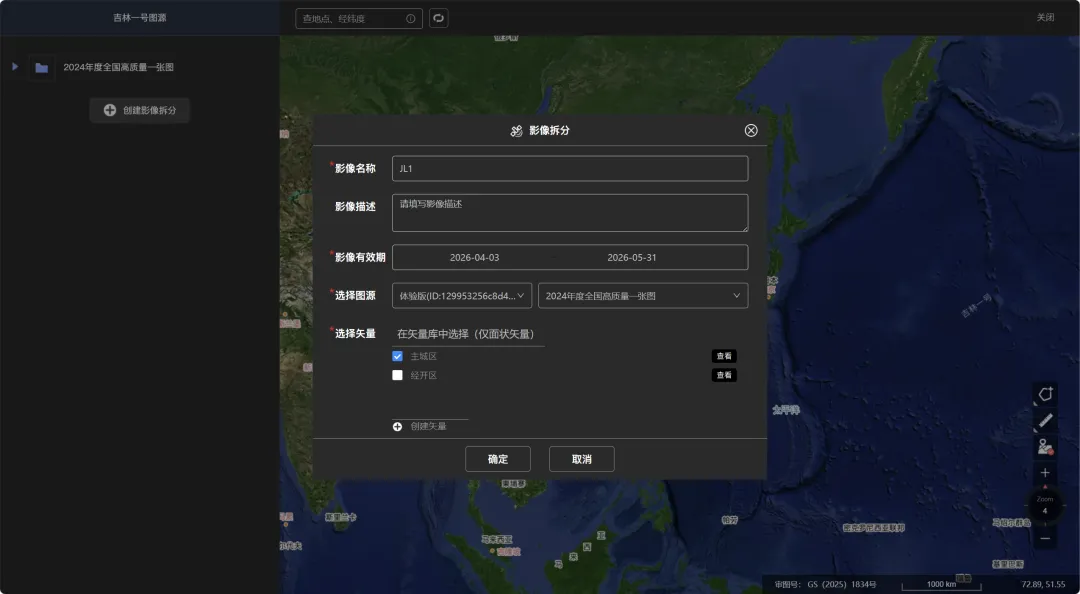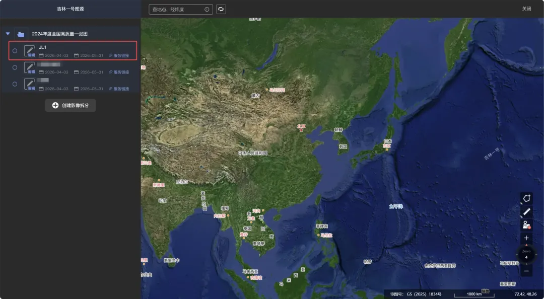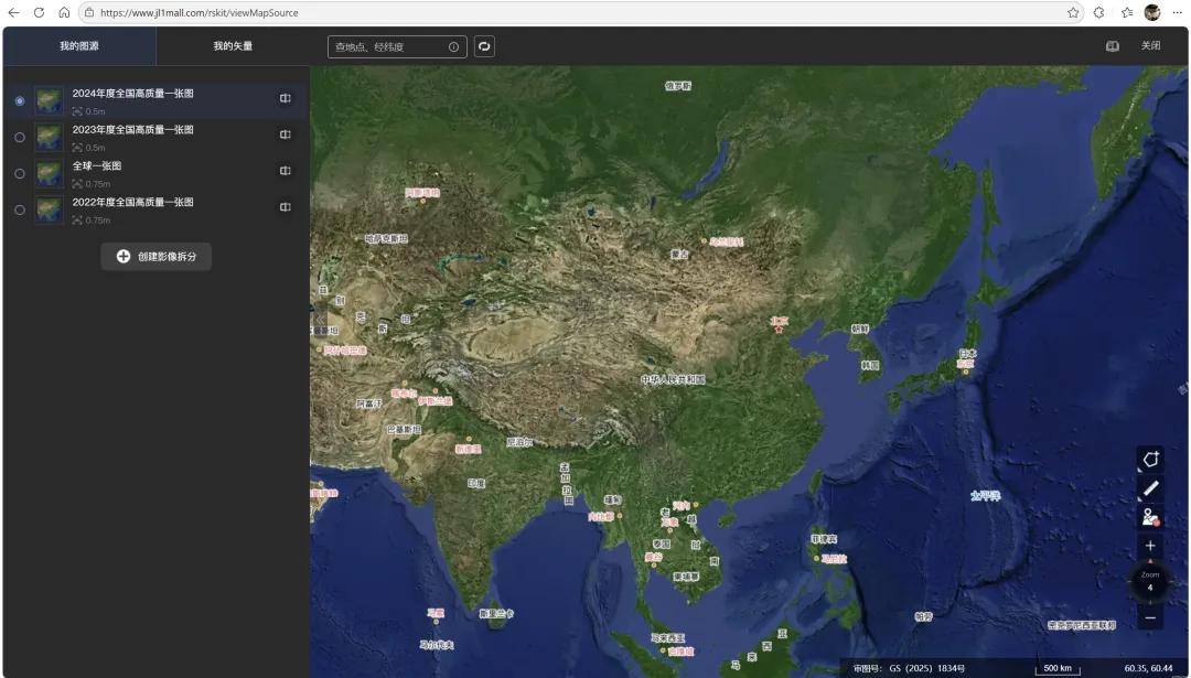 基于QGIS免费下载吉林一号0.5米遥感影像 吉林一号切片影像套件面向遥感地信及相关领域工程师、企业级开发者等用户群体提供三大类典型使用场景:在线使用、配套吉林一号切片影像套件工具集SDK使用或借助第三方工具使用。本节介绍采用第三方工具QGIS来下载0.5遥感影像。 1、打开吉林一号网 2、创建影像拆分 3、在QGIS中加载切片影像套件服务 4、基于QGIS遥感影像下载到本地GeoTIFF