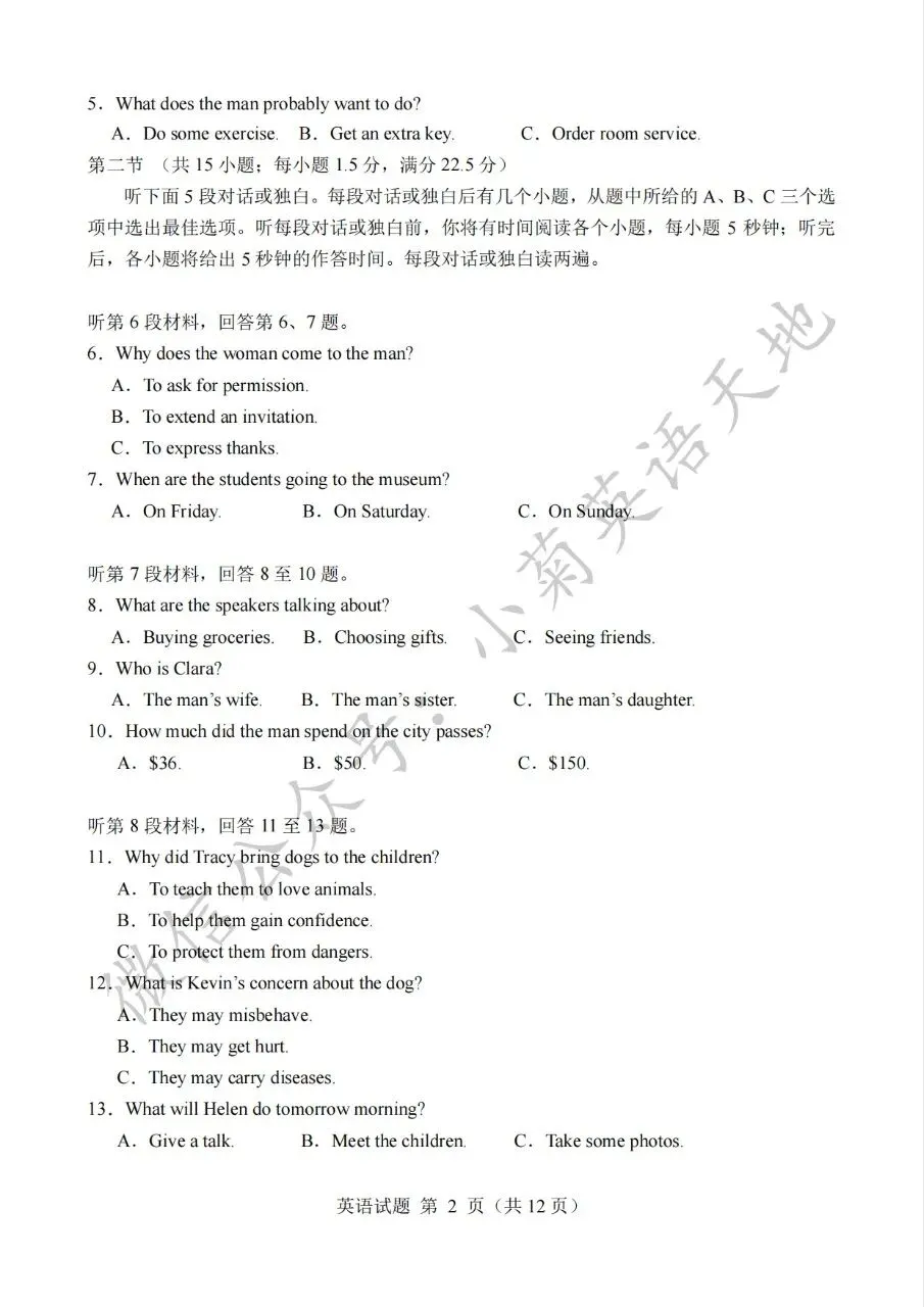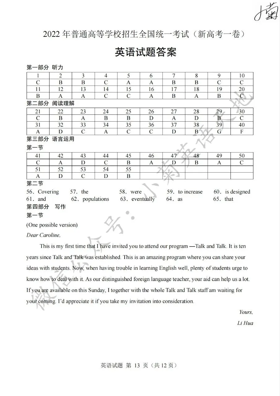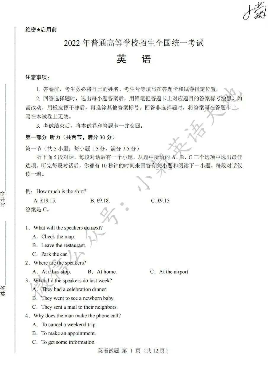 分享2022年高考新高考一卷英语试题(PDF重制版)(含答案解析+听力音频)