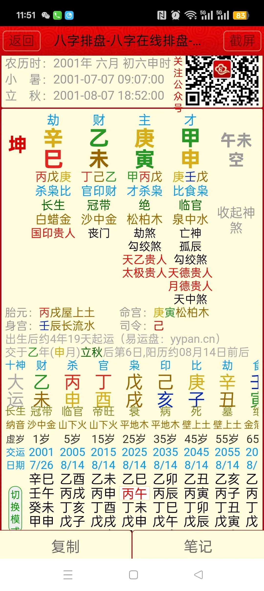 其中,那个先生说我中年有一步己亥运和庚子运,虽说可以赚比较多的钱,但是钱太多了就又开始坏印了。