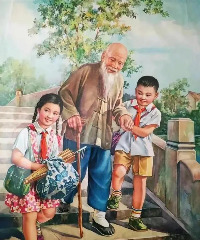 这幅画,叫年画,过年头几天家家要去新华书店挑年画贴在屋里,画上老人、小孩儿、花鸟鱼虫,喜庆得很,小时候攒零钱和小伙伴一块儿去挑,看花了眼,买回家抢着挂,那个年味啊,现在很难再画出来了。