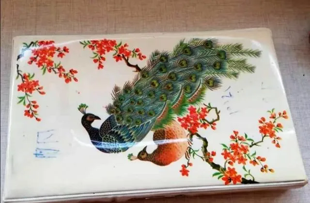 这个画着孔雀的长方块是塑料文具盒,孩子们的宝贝,搁了铅笔橡皮,开学第一天总要在同学面前亮一亮,有的心急把盒子往热炕头上一扔,回来变了一只软壳盒,大人看见只叹气,“这个还得用多少年呢”,那会儿觉得用坏了心疼,现在只剩回忆。