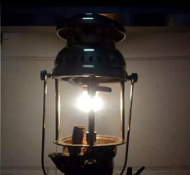 这盏带玻璃罩的叫油气灯,有“干电灯”的外号,家里演出、庙会,都靠它撑场子,点起来光很亮,用起来不省事,管子堵了还得扎针,奶奶守着我写作业,总让我离灯远点,怕熏坏眼睛,后来家家都有电灯,油气灯就成了搁橱柜的“老古董”。