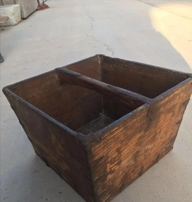 这个老家伙叫木斗,用来称粮食的,有梁的是斗,没有梁的是升,乡下流行摸斗、出入都有讲究,装粮装面,一衡十升为一斗,粮店见的多,说几升米没人用秤,全凭斗,别看一个木头块,分量可沉得很,老人讲一升三斤换算一点都不差。