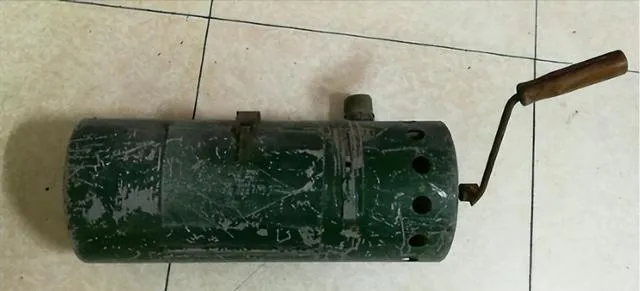 绿色圆筒带把的东西是手摇干式喷粉器,专给庄稼喷六六六粉治害虫,手摇出粉,风一吹就飘到麦棵水稻上,有点像江湖把式炫技,六七十年代生产队家家一台,现在全变电动了,孩子们都没用过。