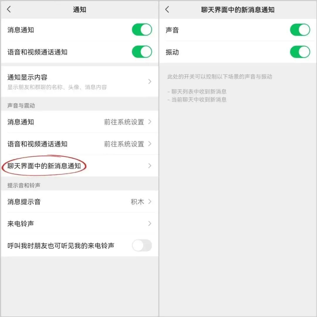 第二个核心更新,是在“我-设置-通知”里新增了“聊天界面中的新消息通知”开关,把声音和振动的控制权完全交给用户。