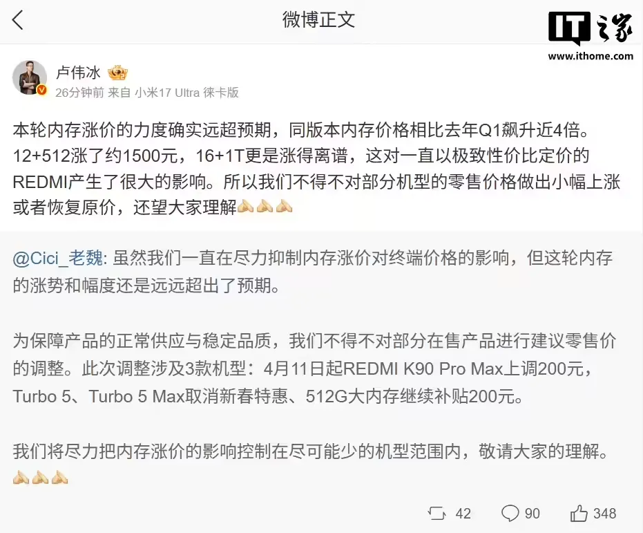 vivo 和 iQOO 自 2026 年 3 月 18 日 10:00 起调整部分产品的建议零售价。