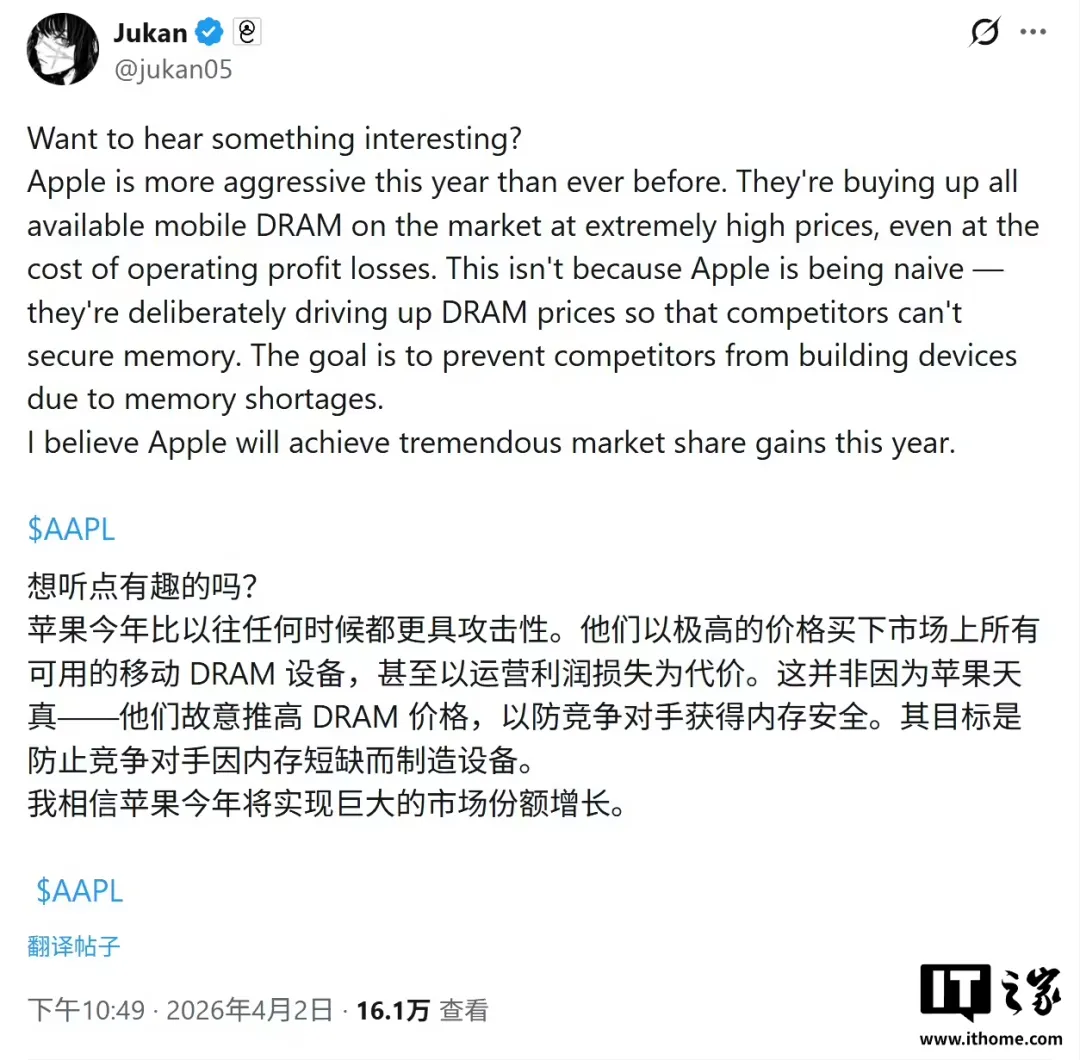 内存涨价全面突破安卓阵营,曝苹果要出奇招