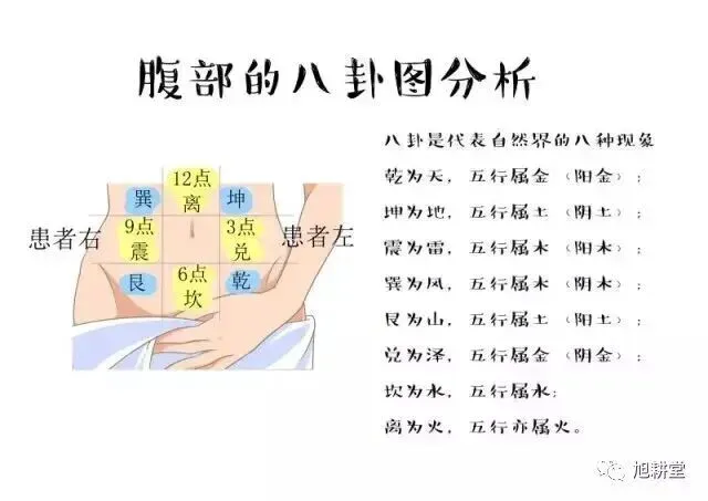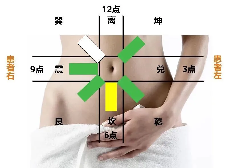 中医学“人身八卦”的观念,无论是在肚脐(神阙)部分,还是在身体躯干部分,配合中医学传统的辨证论治,在各脏腑所属卦位上做生克荣辱的作为,以色作药,对人体产生的疾病加以克制。