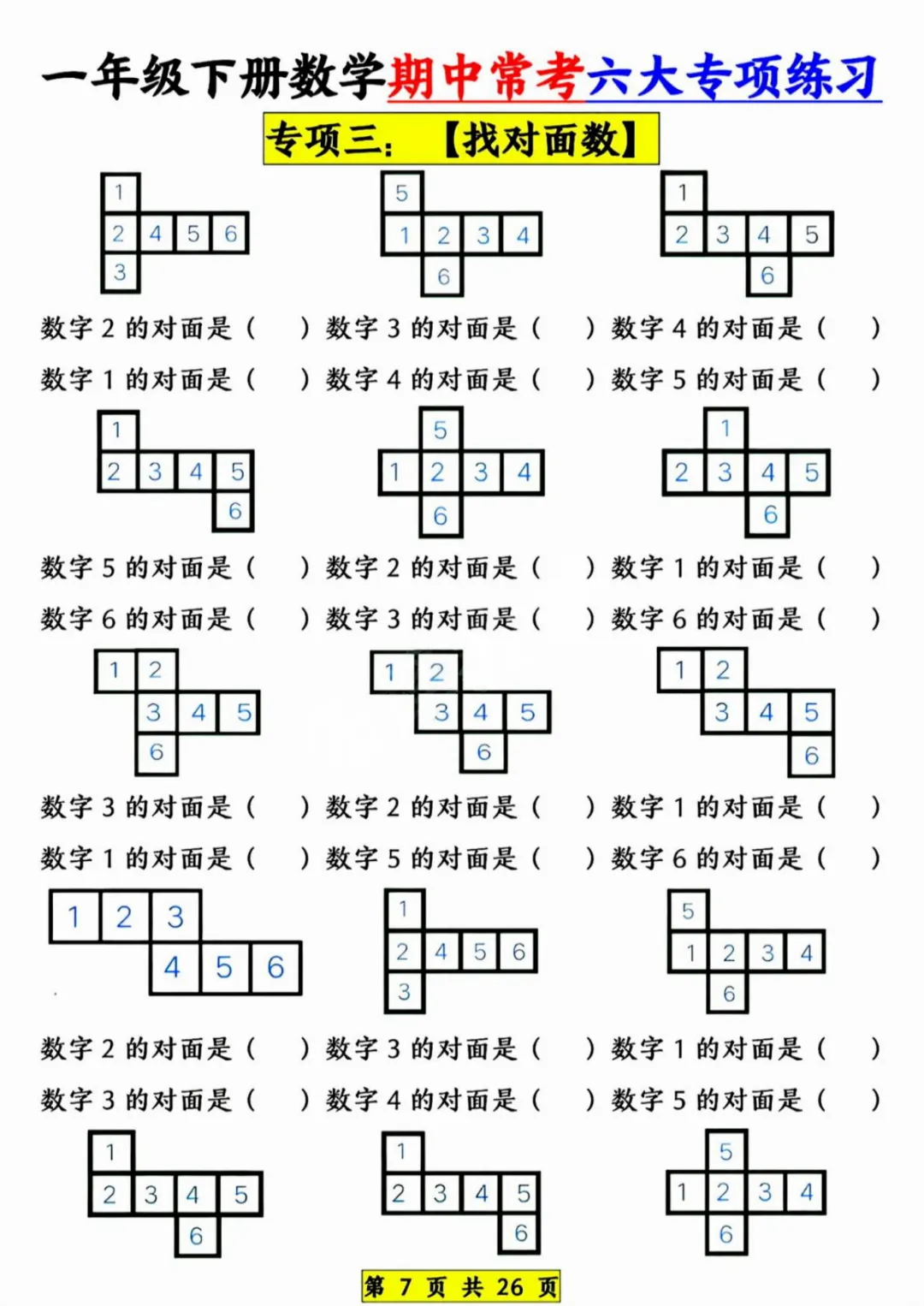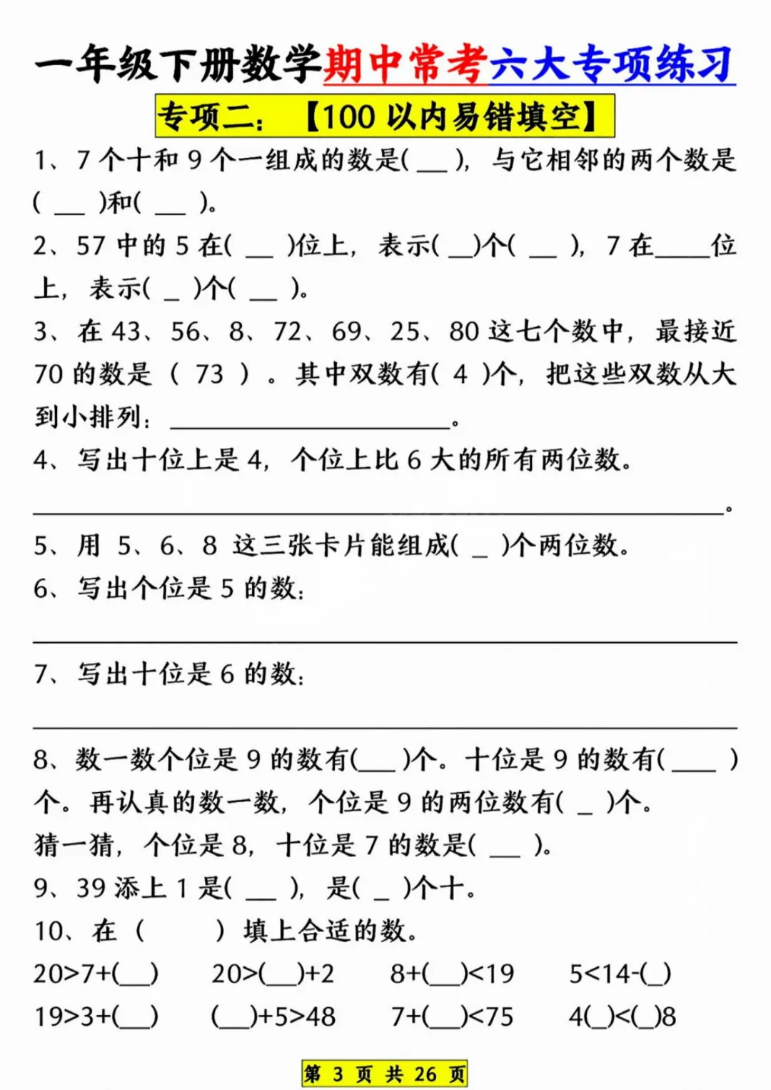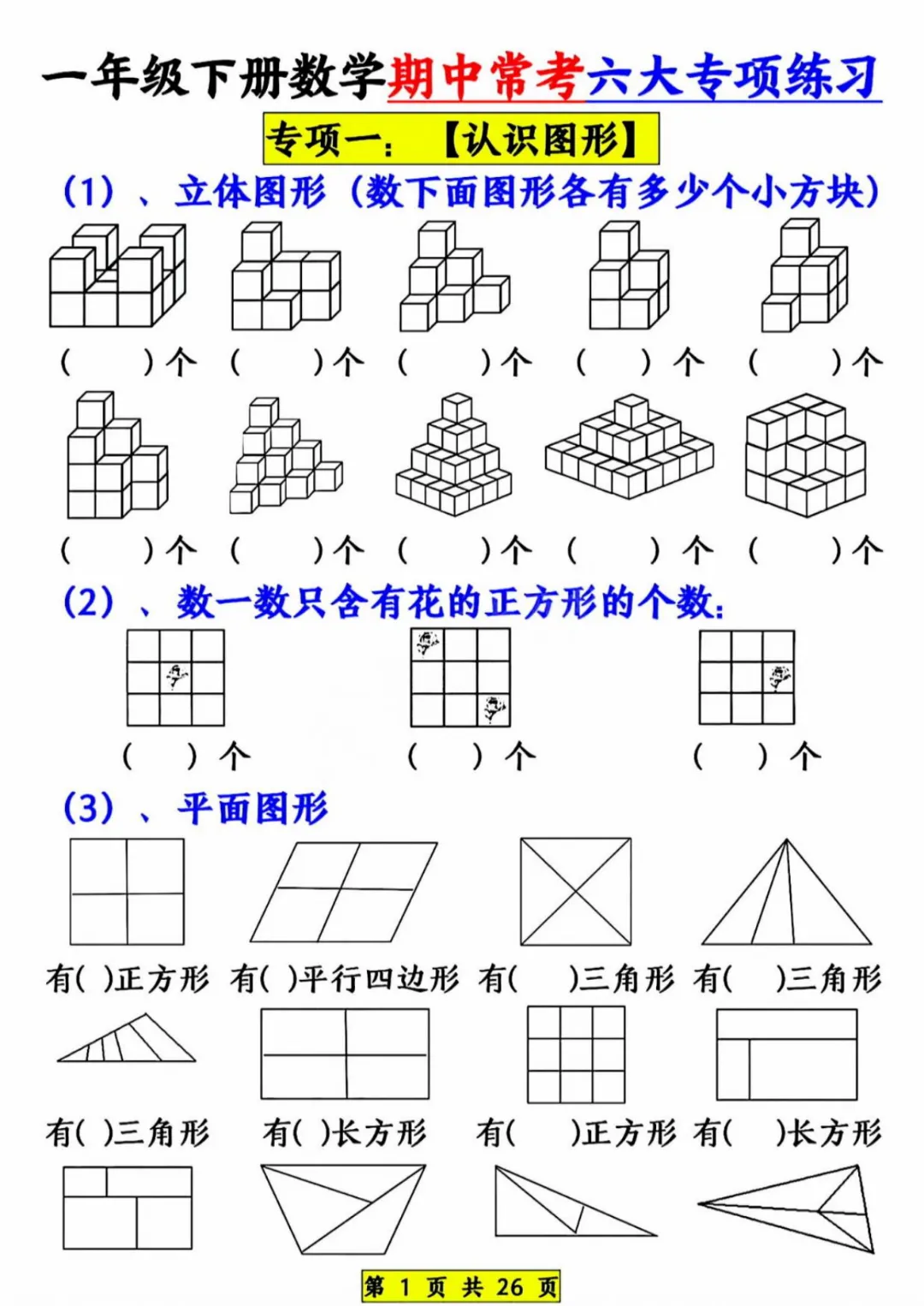 26新《一年级下册数学期中常考六大专项》电子版可打印