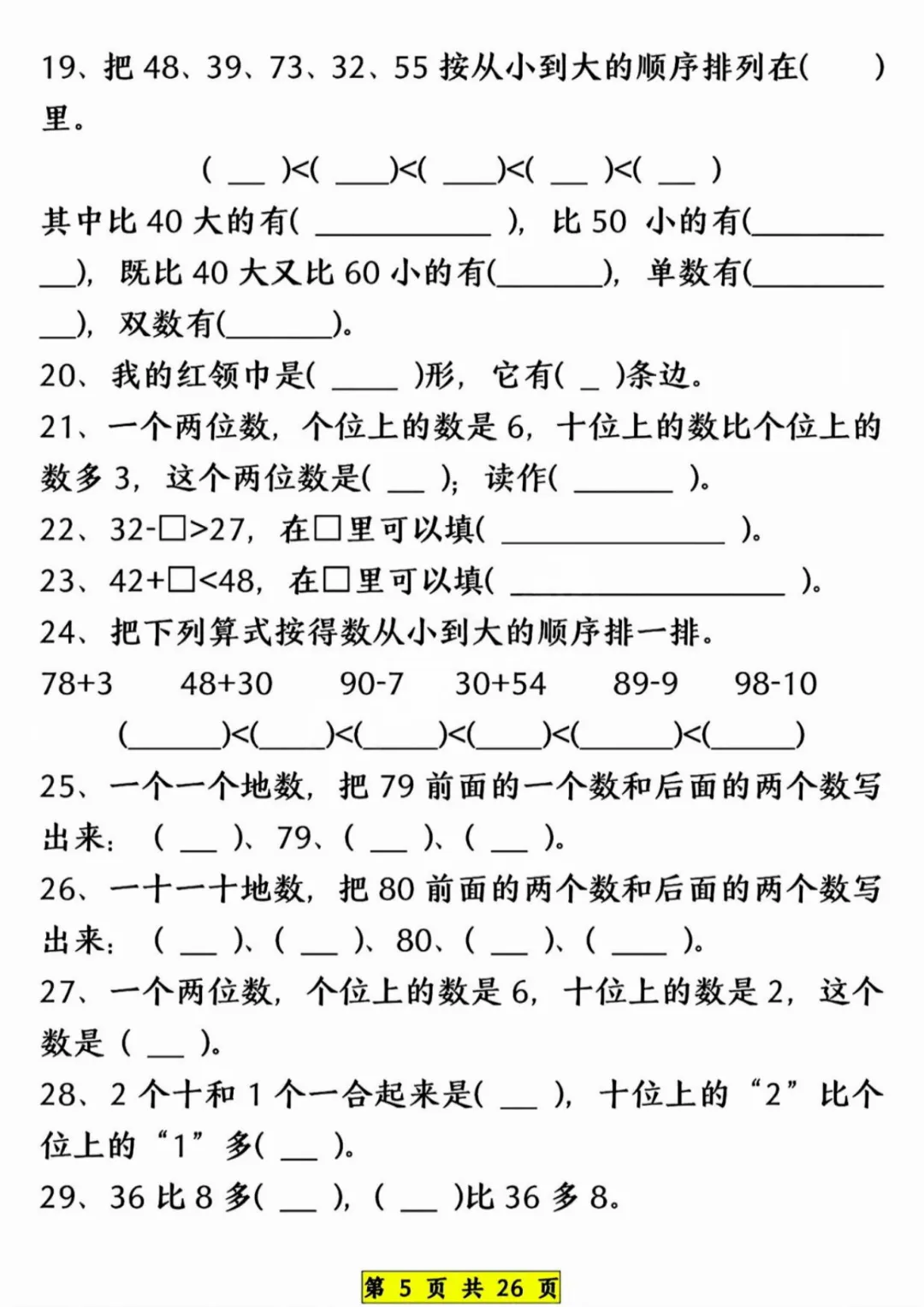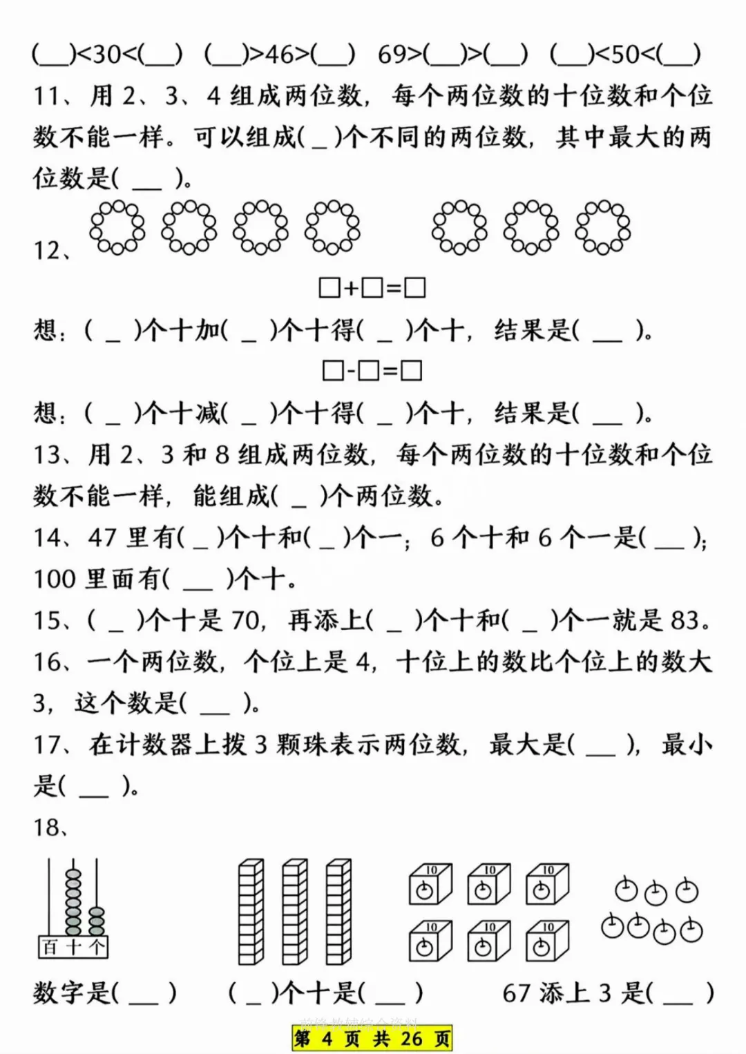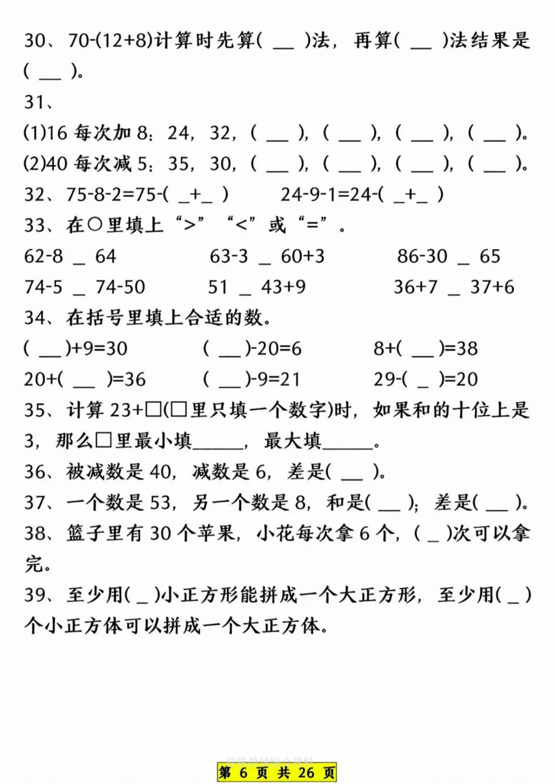 26新《一年级下册数学期中常考六大专项》电子版可打印