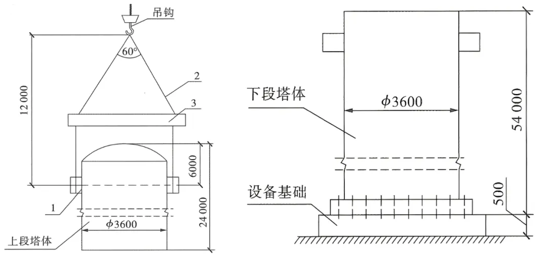 洗涤塔上段/下段吊装索具配置示意图(单位:mm)答:
