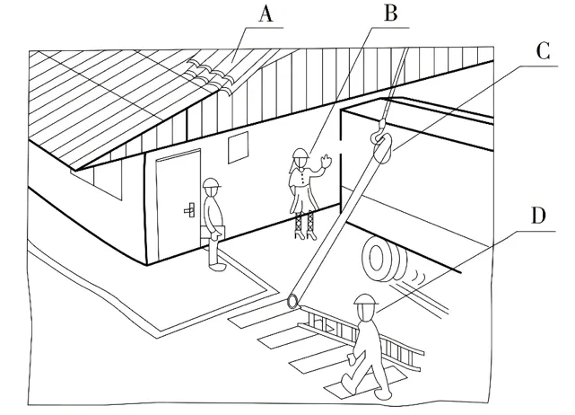 (4)D:重物下严禁站人,存在人身伤害隐患。