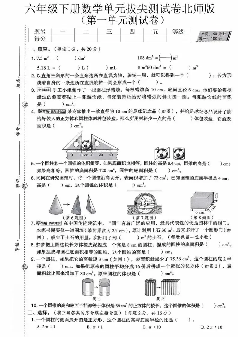 2026春北师大版数学六年级下册《第一单元测试卷》共2套,(有答案),可打印