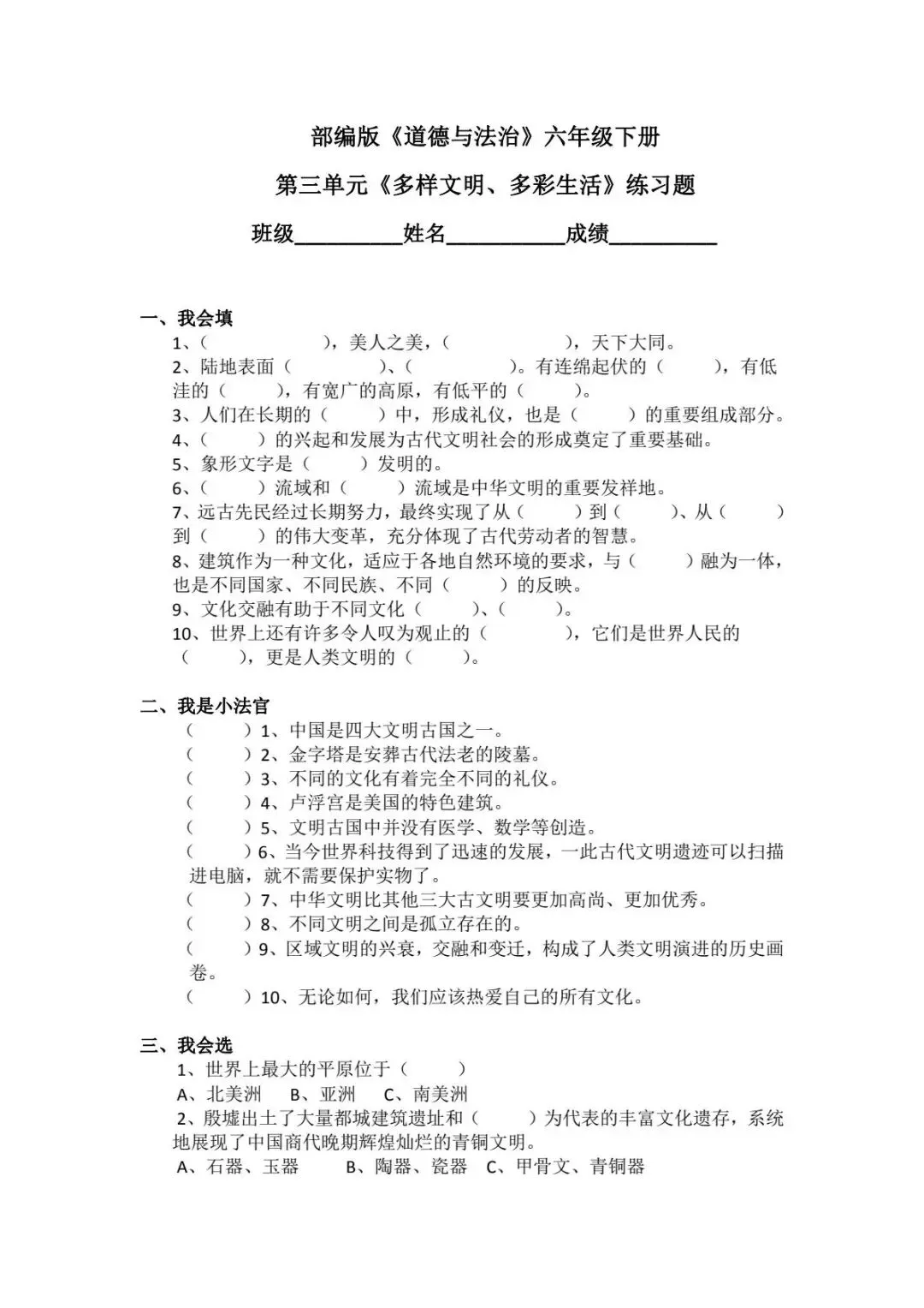 家有六年级学生的家长注意啦!孩子正在为道德与法治第三单元学习发愁?想精准检测学习成果?那这份测试卷你一定得拥有!