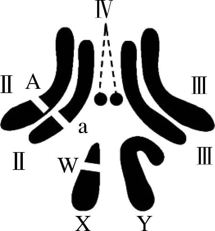 (2)图中A、a基因位于常(或Ⅱ号)染色体上,传给子代雌雄果蝇的概率是相等的,而W基因只能传给子代雌性。雄性的Y染色体只能传给子代雄性并通过雄性个体代代相传。