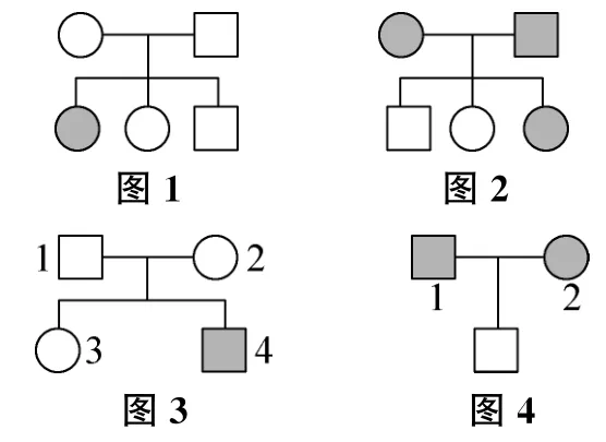 3. 判断下面4张图中的各遗传病的遗传方式,并给出判断依据。