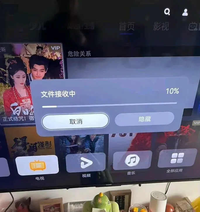 4、当你选择接收后,这个华为智慧屏就开始把华为平板的软件下载到华为智慧屏电视机