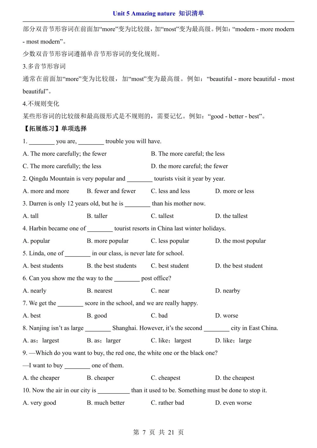 26年春七年级初一下册外研版英语第5单元知识清单+拓展练习【附答案】丨高清电子版可打印(330)