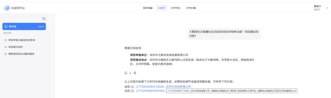 ●信息提取:基于上传的项目文档,精准问答项目详情、核心数据。