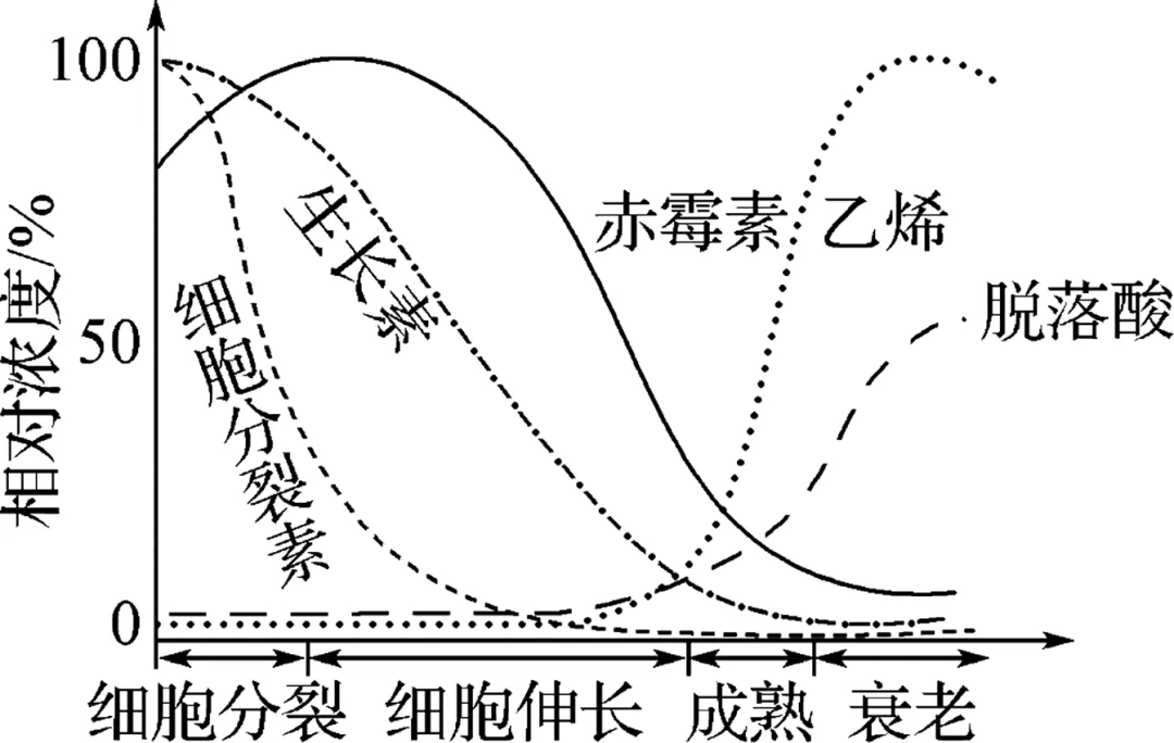 3. 如图为果实发育过程中不同植物激素的浓度变化曲线,回答下列问题: