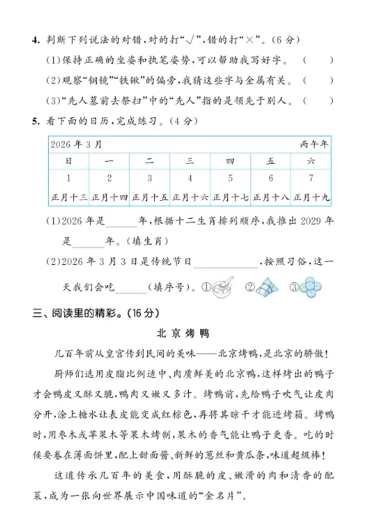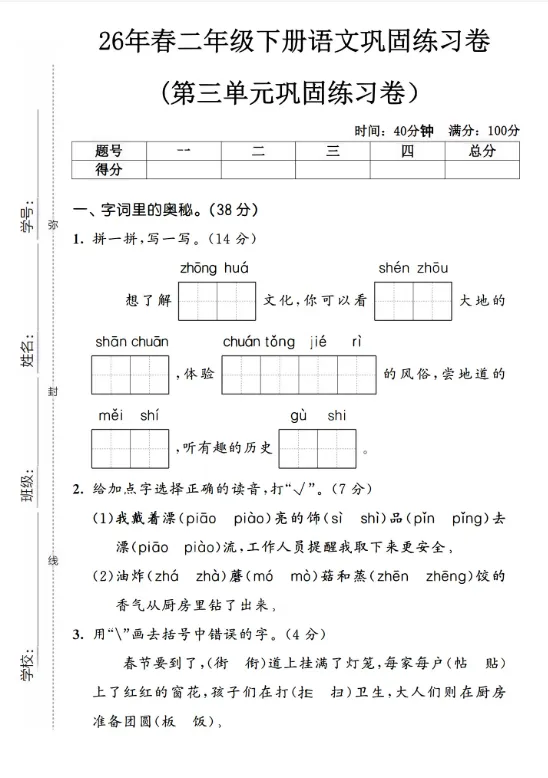 26(新版)二年级下册语文《第三单元测试卷》共(25页)完整版,电子版高清可下载可打印。因篇幅有限,仅展示部分内容。有需要的家长快给孩子领取一份,让孩子练习吧!