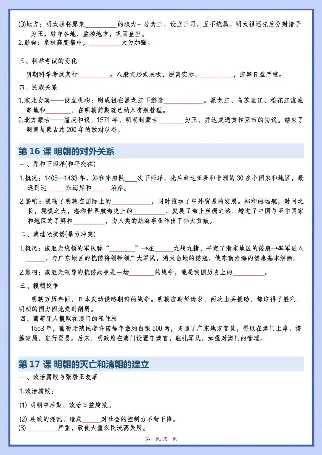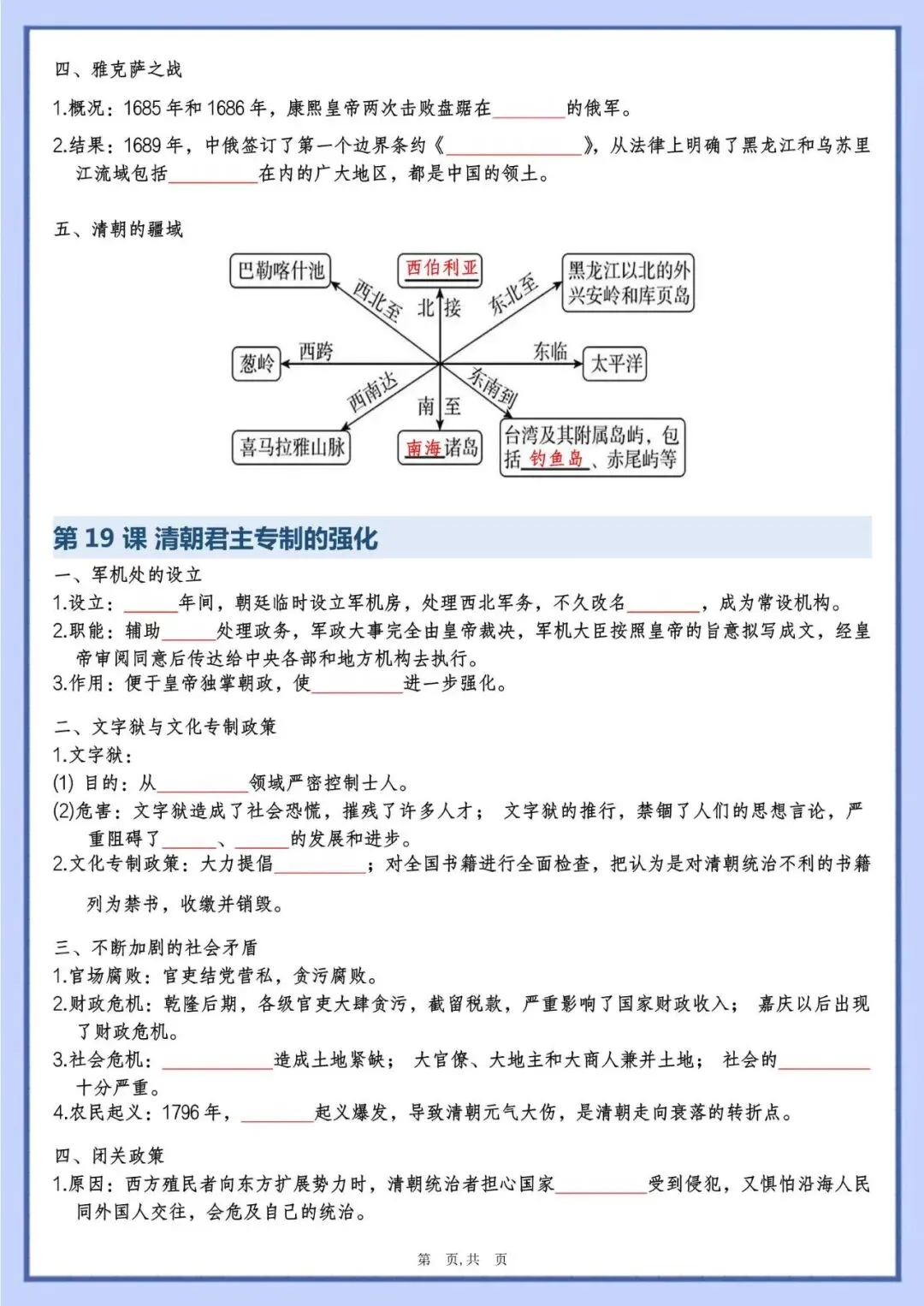 今天老师给大家整理了:七下历史填空汇总,背完考试不丢分,电子版可打印!