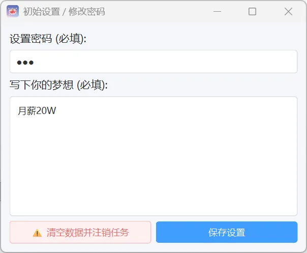确实可以。但软件本身有密码保护,而且它提醒你的是你自己的梦想。每次你想绕过它的时候,都会看到那句你亲手写下的目标。