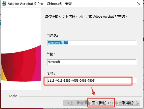 第四步:安装 Adobe Acrobat 9 pro。