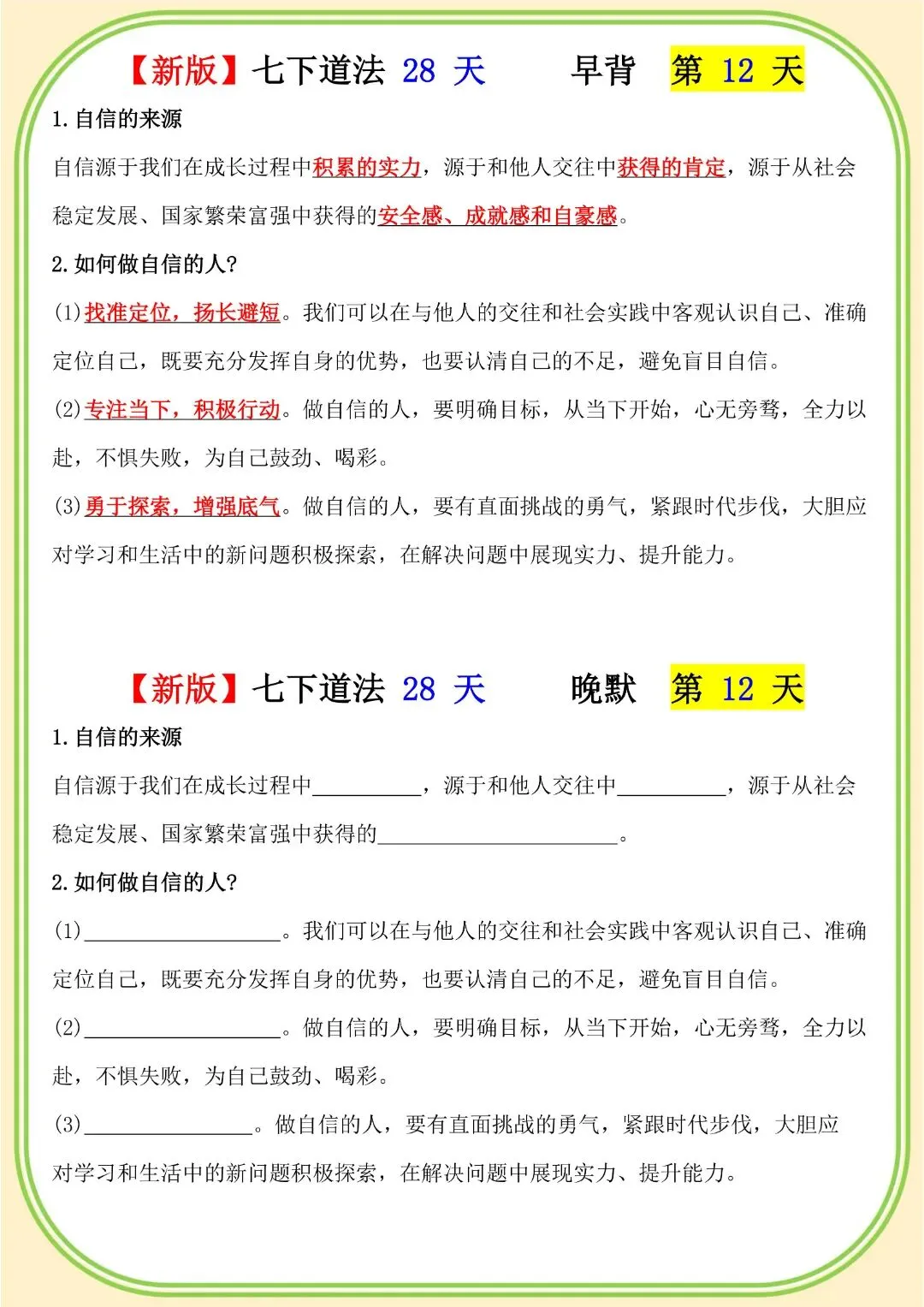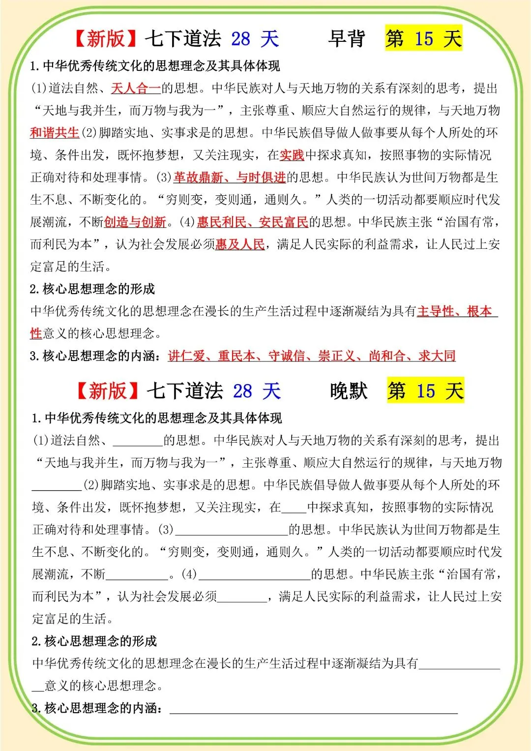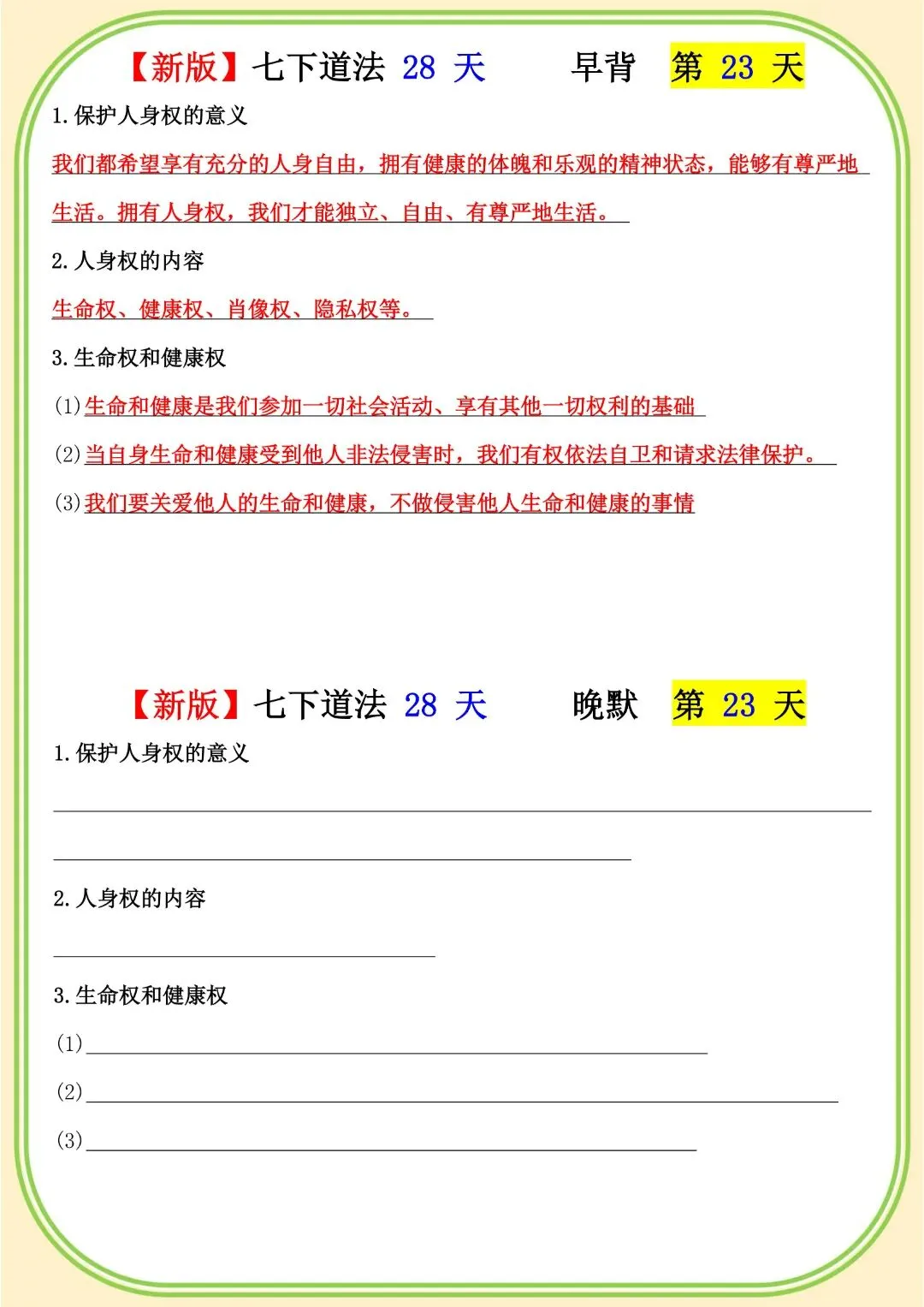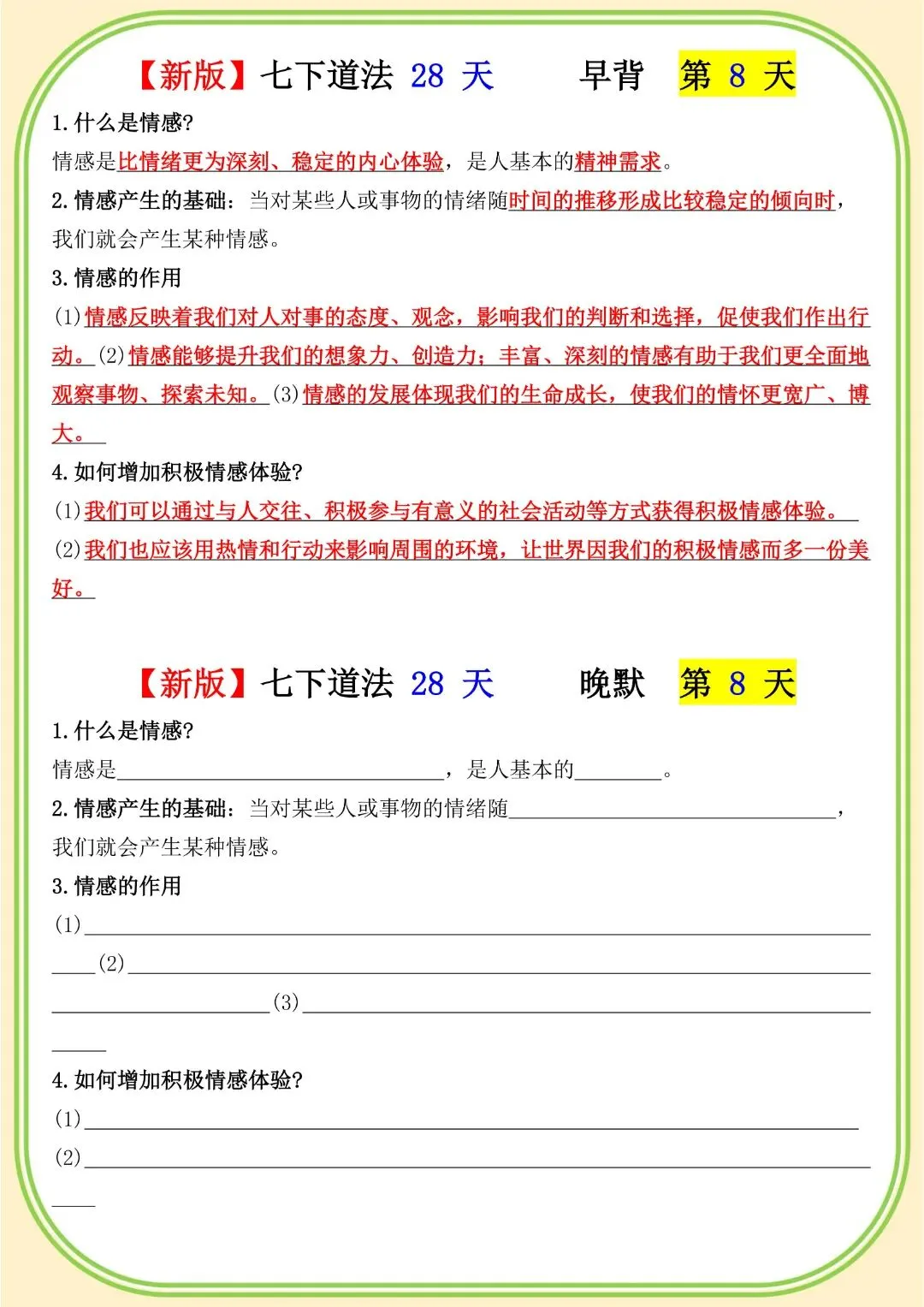 《初中》七年级下册道法早背晚默,完整电子版可打印