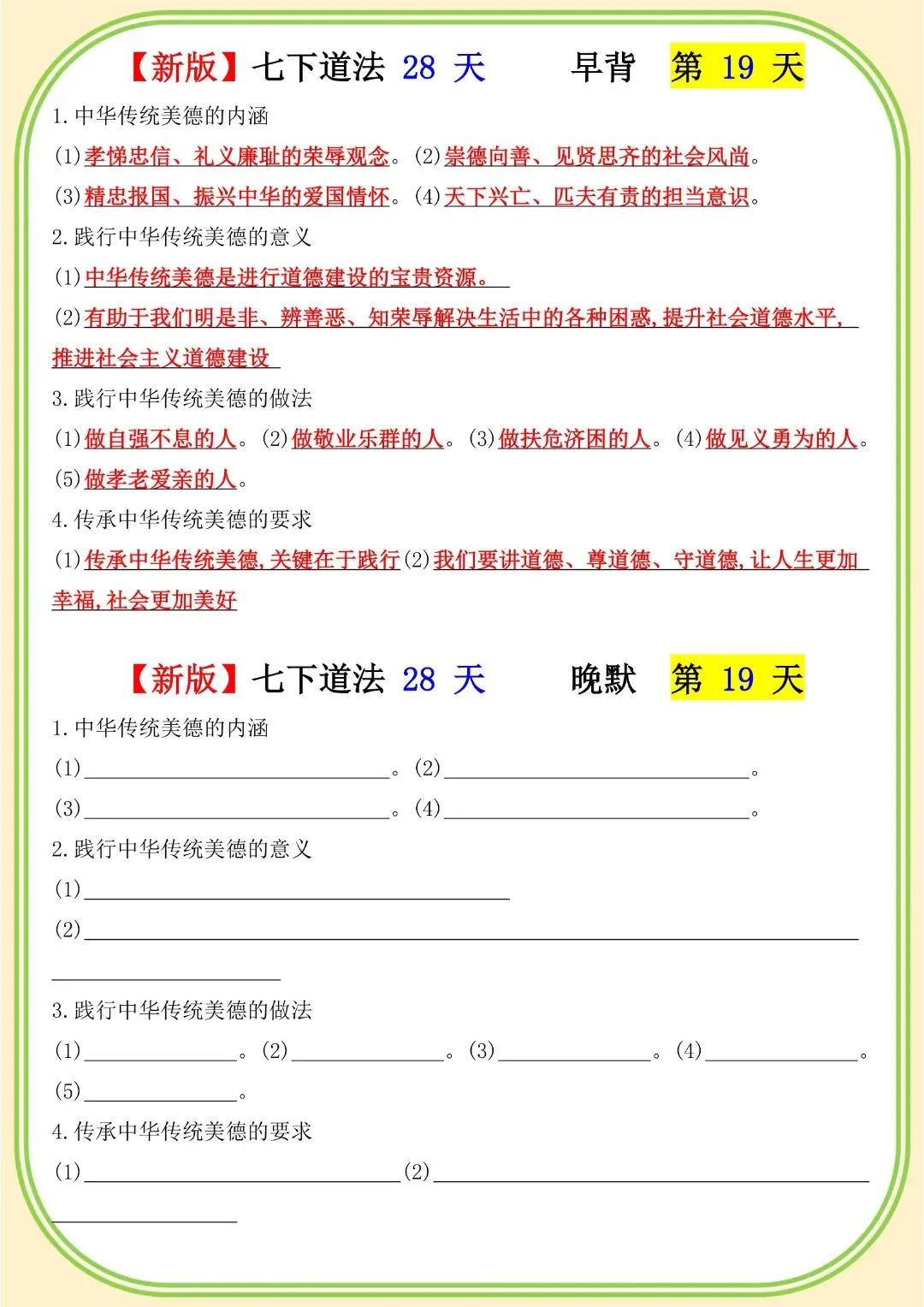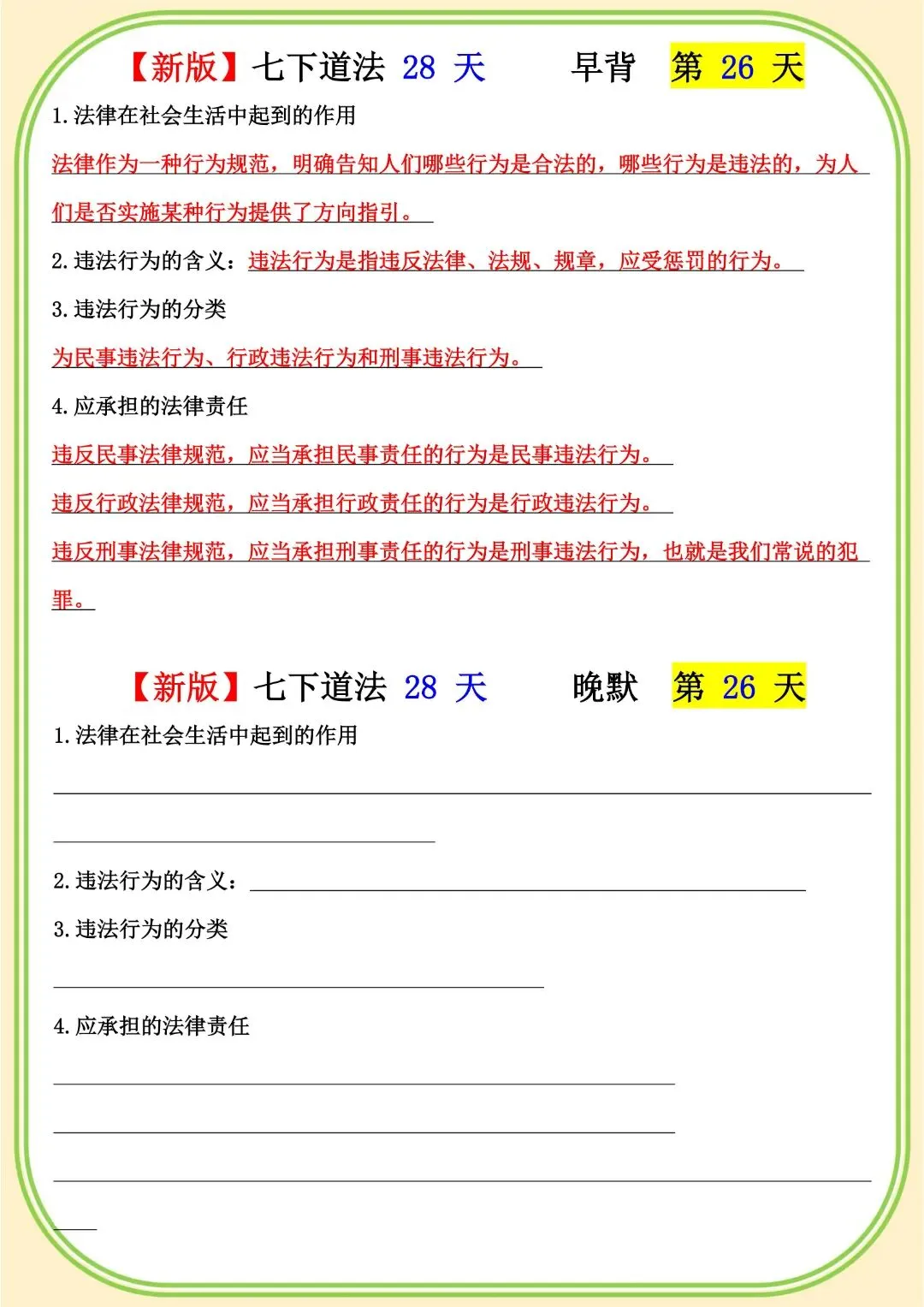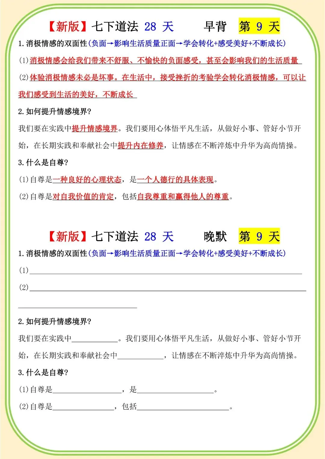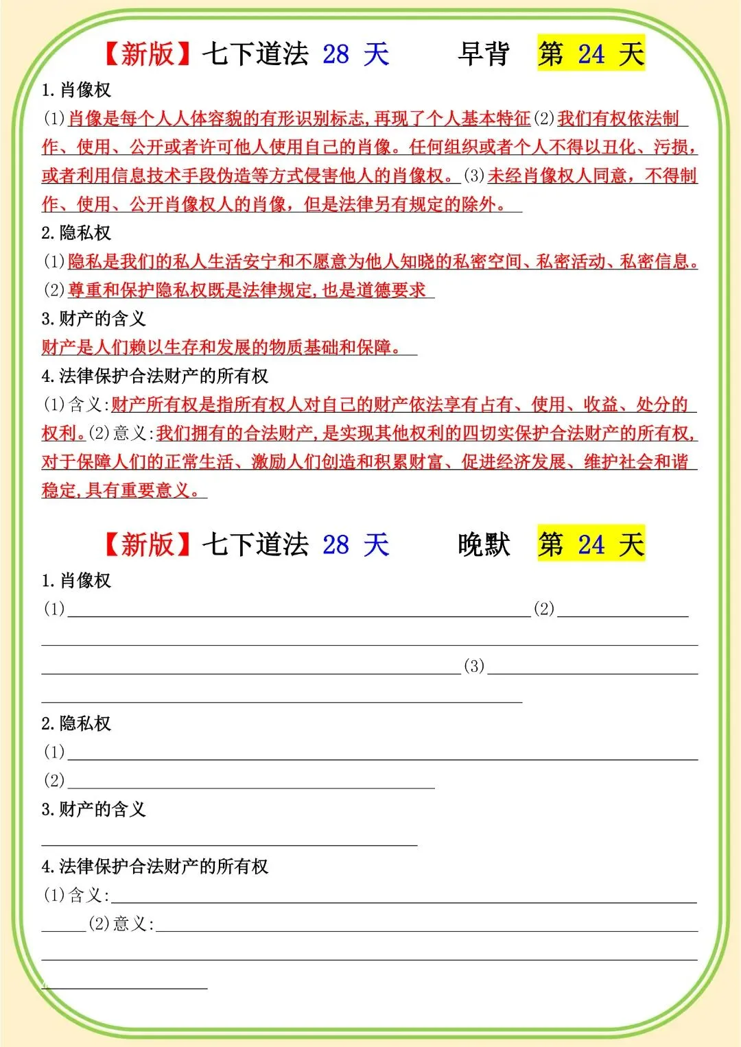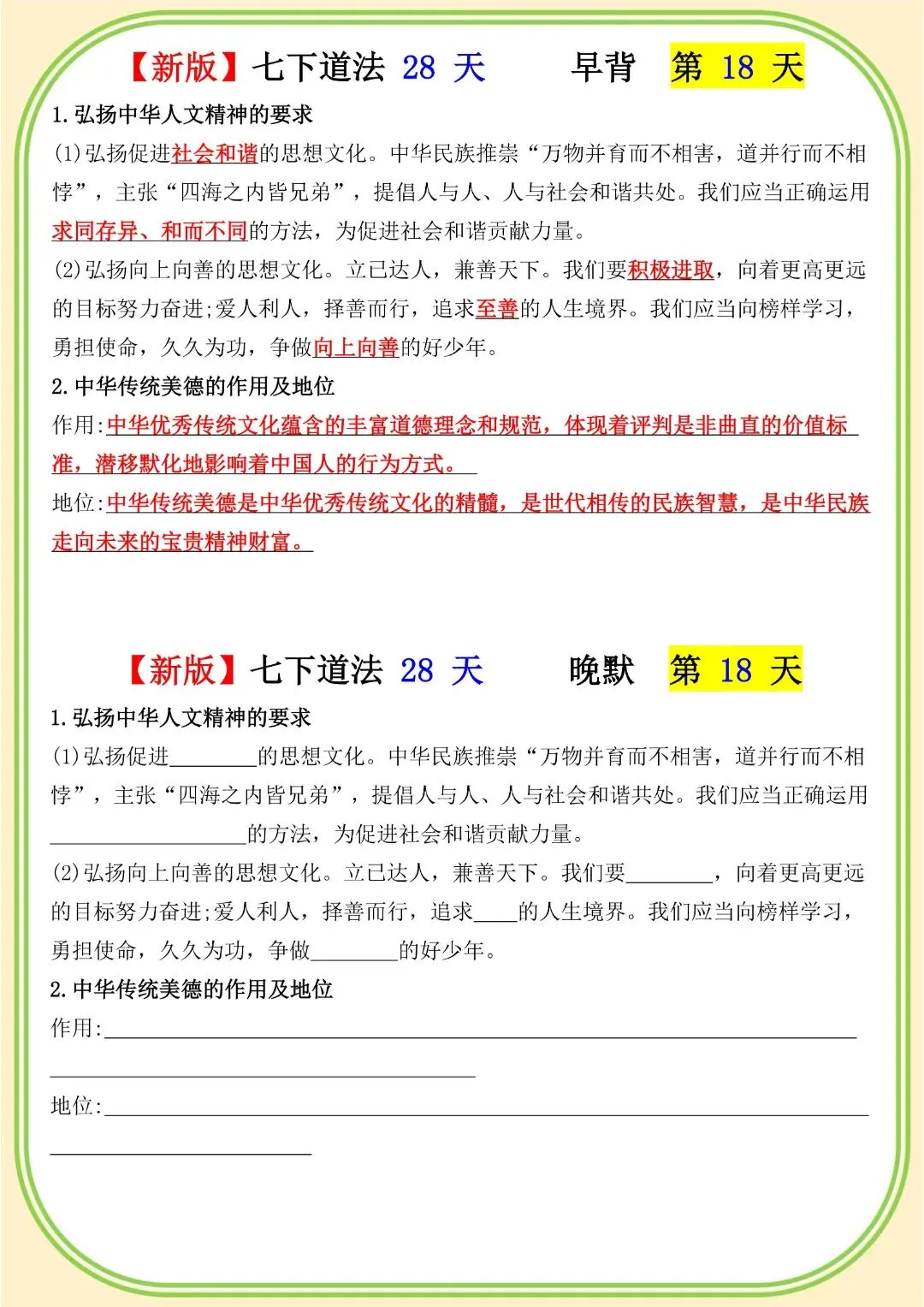 《初中》七年级下册道法早背晚默,完整电子版可打印