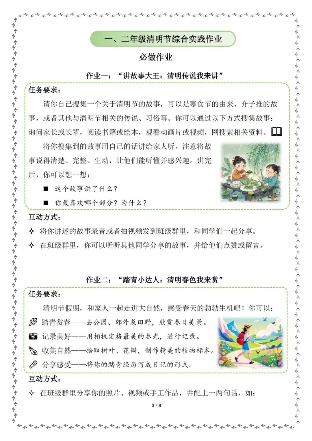 2026春《清明节综合实践作业》PDF电子版+清明节手抄报,可下载打印