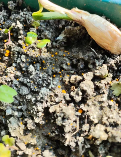 那些像小米粒一样的黄色颗粒,是一种喜湿的真菌。它们的出现,说明你的盆土已经长期处于过湿、不通风的状态。土壤里的氧气被耗尽,根系正在“溺水”。