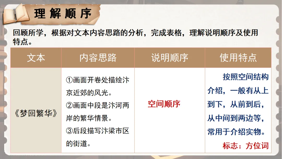 2.能够根据关注角度和说明对象、内容,合理选择并综合运用恰当的说明顺序。