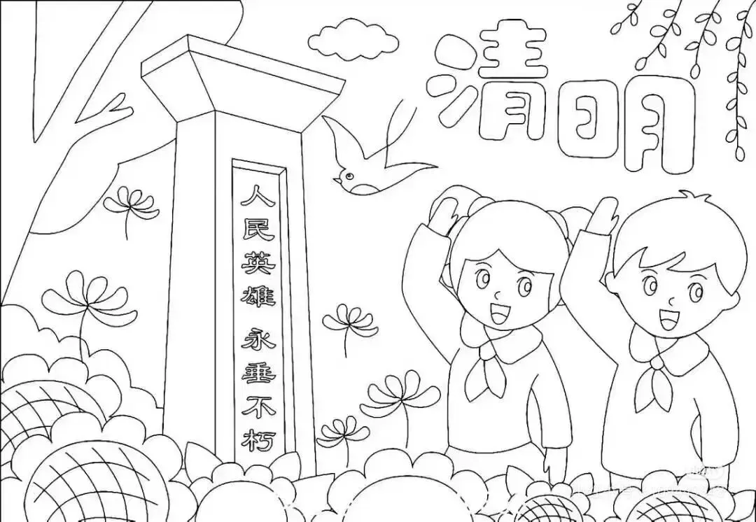 清明节手抄报线稿可打印
