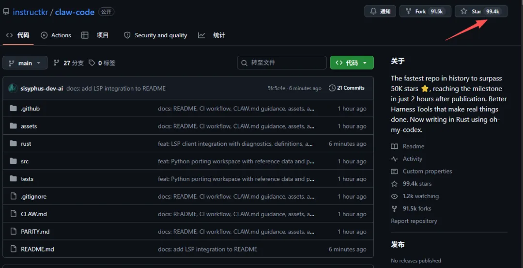 扩散速度真TM快,泄露后数小时内,GitHub镜像仓库星标破5万、备份超2万次,甚至出现“翻译成Python”的魔改版项目,2小时突破50k Star,创下GitHub历史最快纪录。