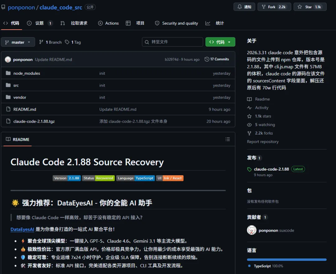 2026年3月31日凌晨:Anthropic发布Claude Code v2.1.88版本 Anthropic 在其官方 npm 仓库发布 Claude Code CLI(命令行工具)的最新生产版本时,错误地包含了调试用途的 Source Map(.map)文件。