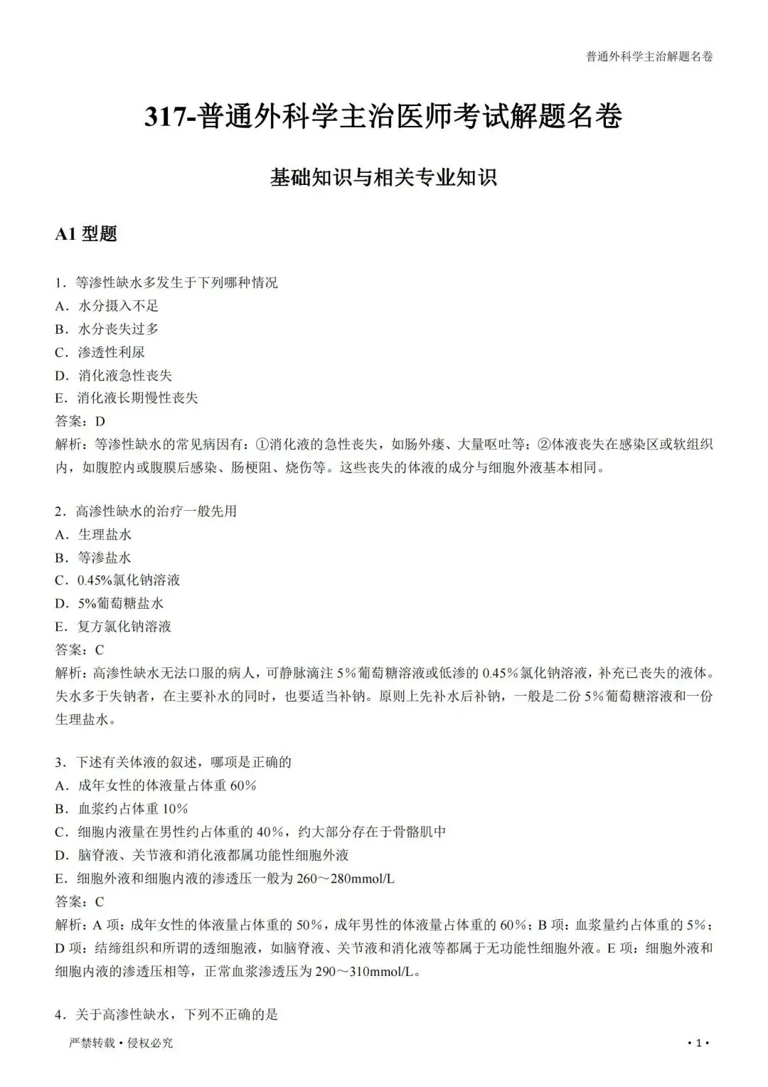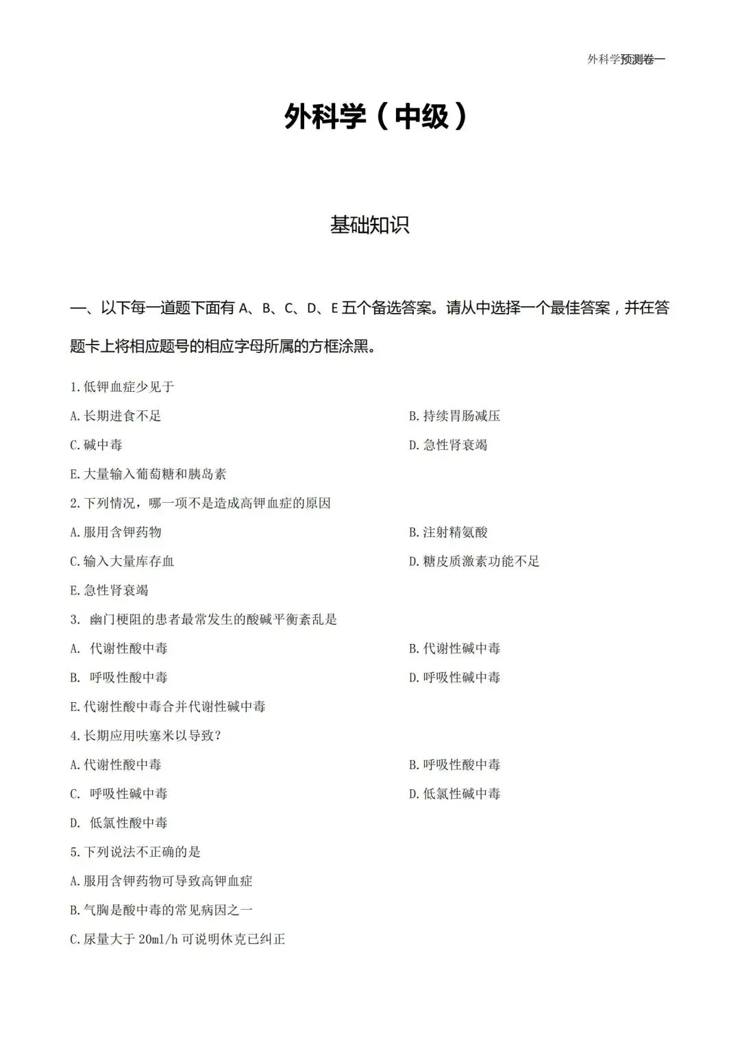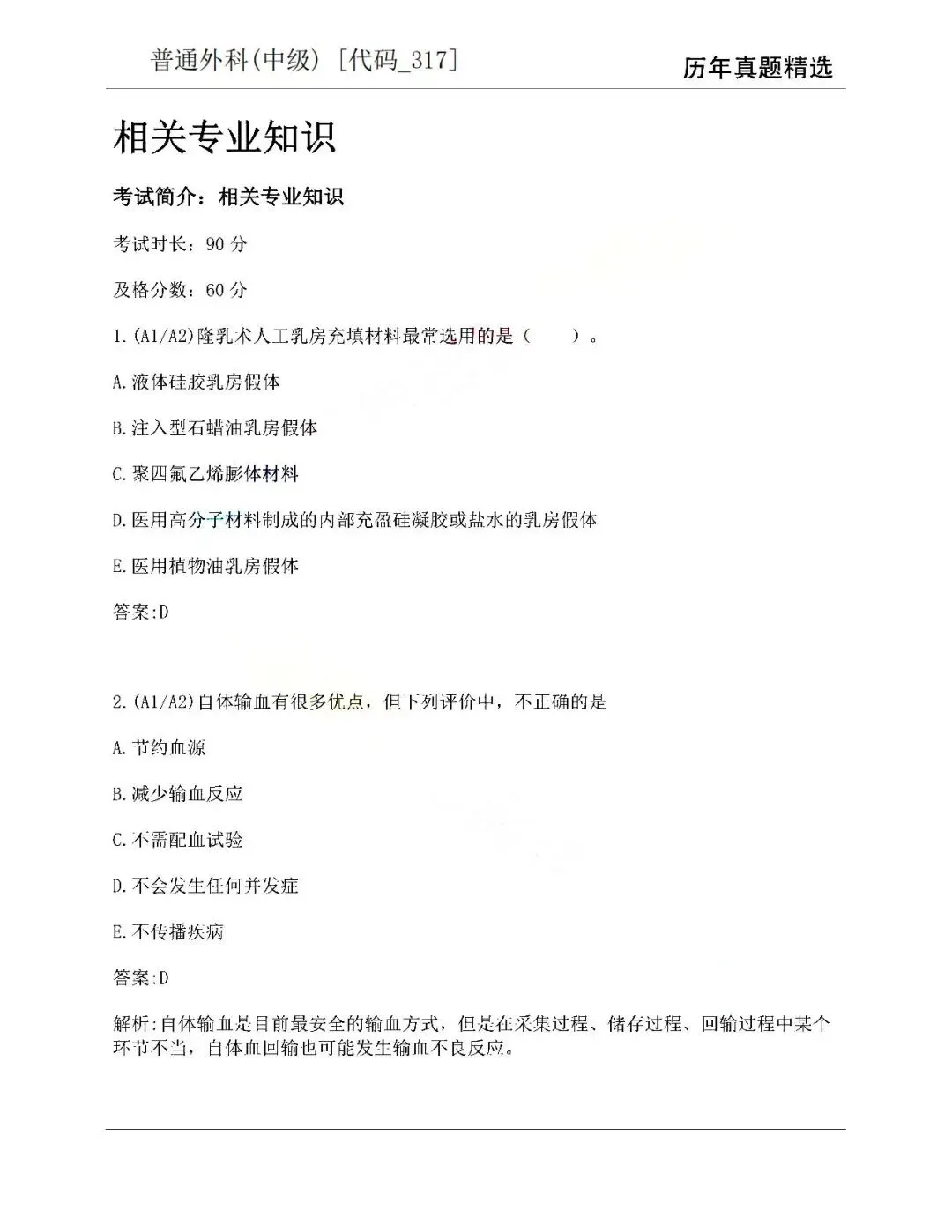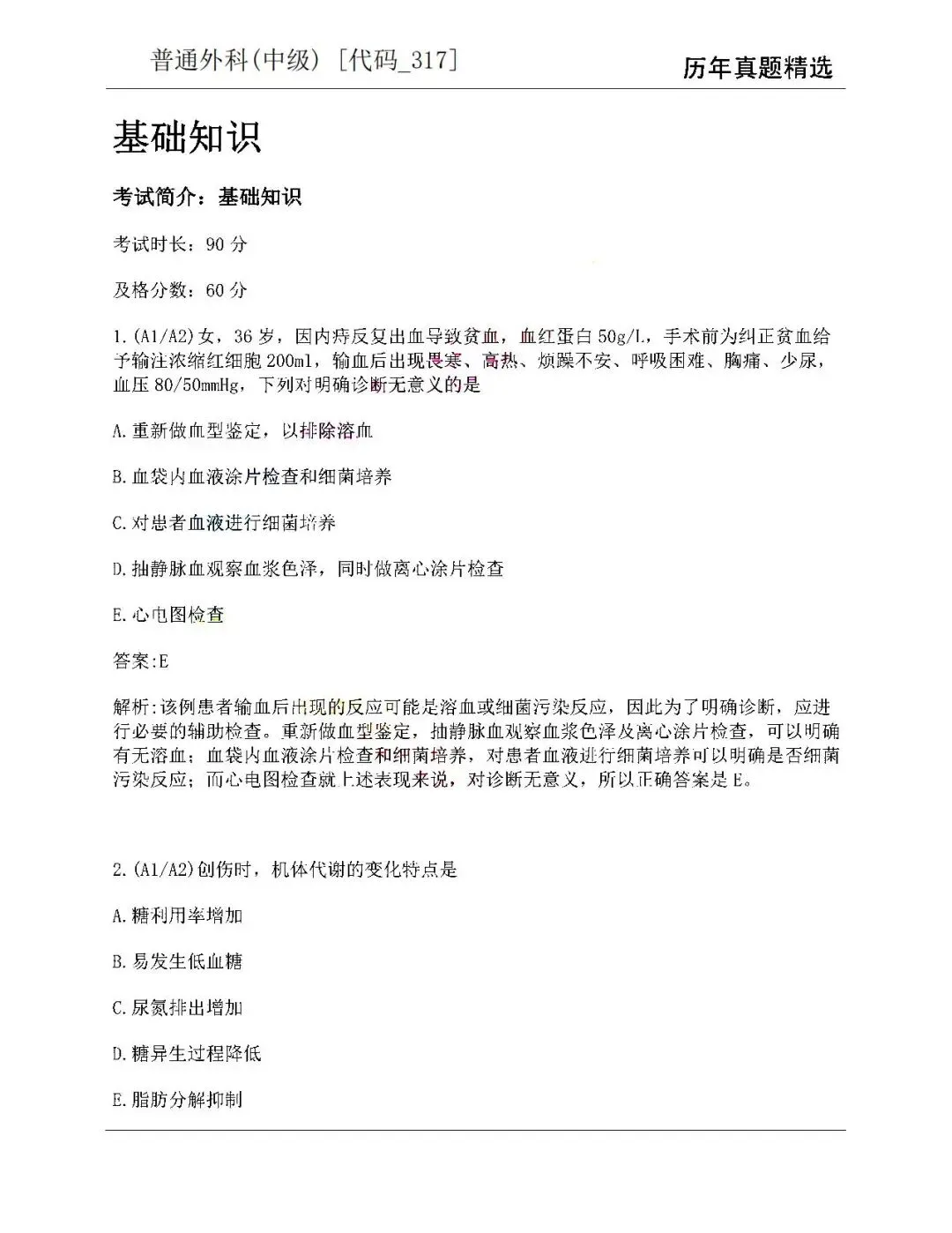 五、普通外科学中级(317)历年真题【历年真题—真题是对考试考点、难度的真实反映,先过一遍历年真题,了解考情和考点,卫生职称往往会存在历年真题重现,考生重点把握】