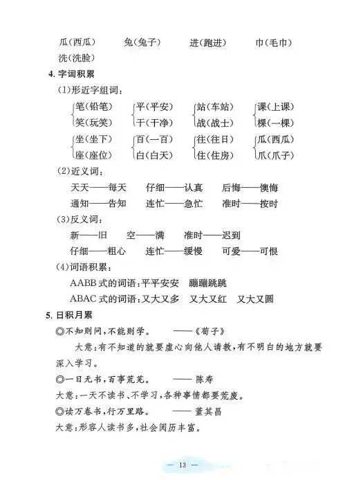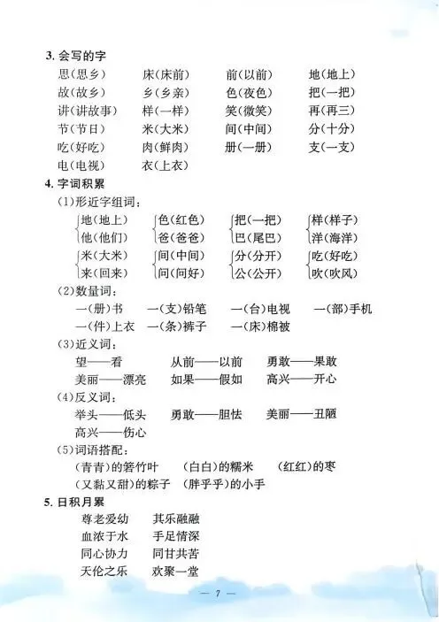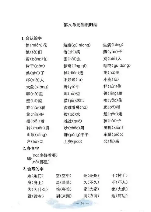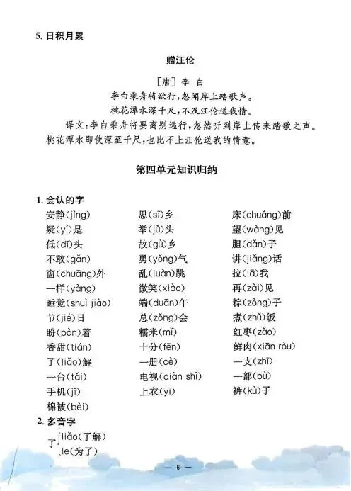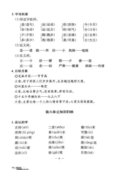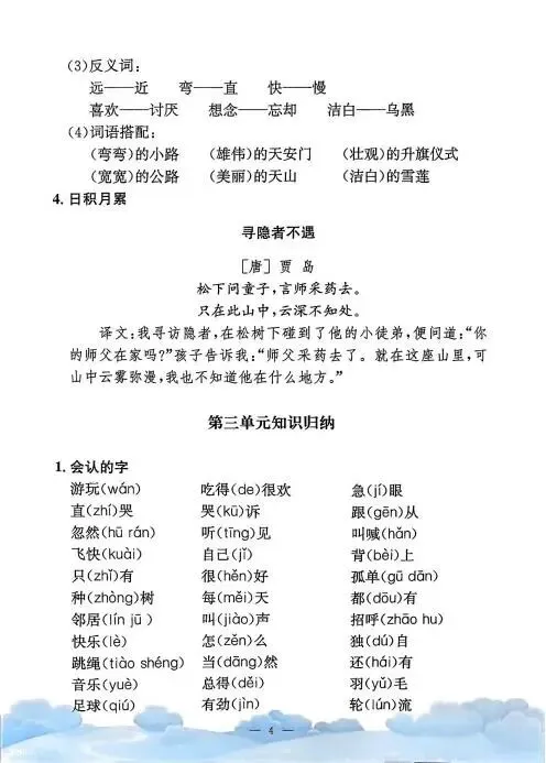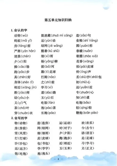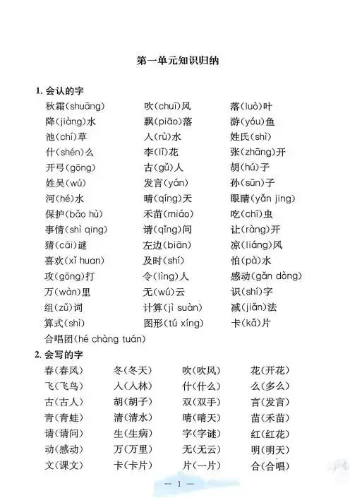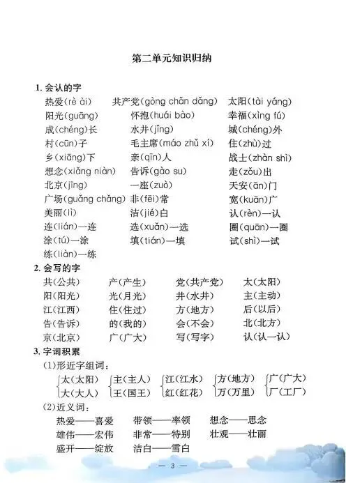 《单元知识梳理》紧扣教材,系统归纳拼音、字词、句段等核心考点,搭配专项练习与单元检测,帮助学生夯实基础,提升语文综合能力,是复习巩固的理想助手。高清版本直接打印方便孩子复习总结!✍🏻欢迎转发到班级群,助力更多孩子学习进步!