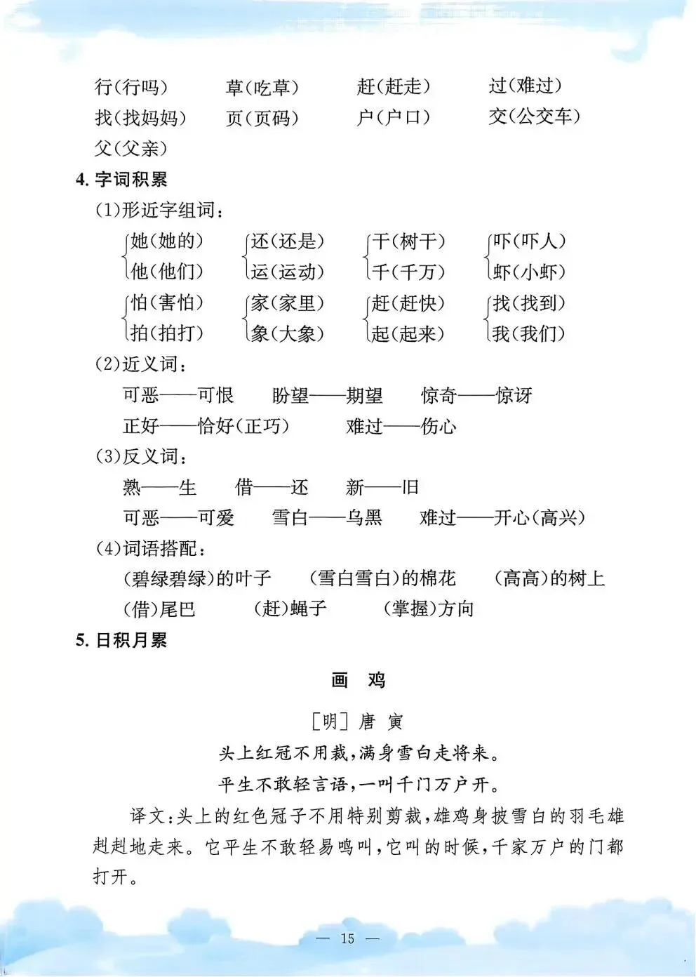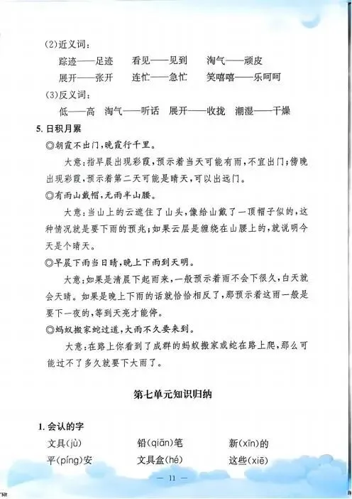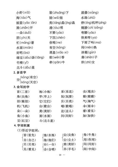 一年级下册语文《单元知识梳理》,电子版可下载打印