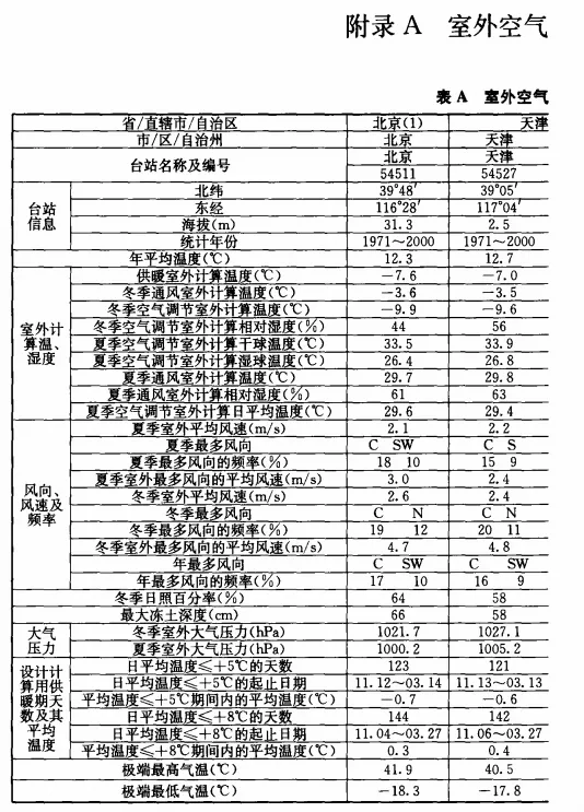 ②历年平均:近年来受气候变化影响,室外空气计算参数随环境温度的变化也发生了改变。本次统计选取1971年1月1日至2000年12月31日30年的每日4次(2、8、14、20点)定时观测数据为基础进行计算