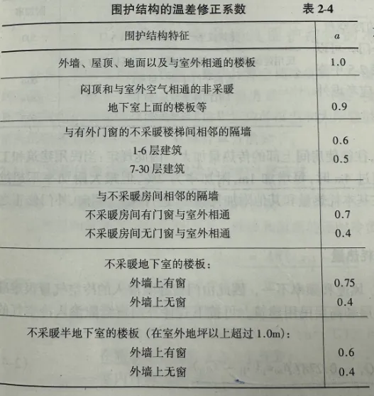 ③ α的确定(围护结构温差修正系数):