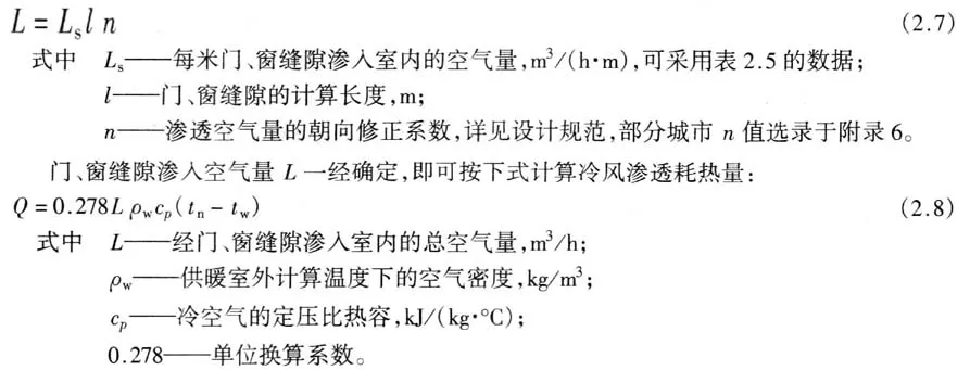 门窗缝隙渗入冷空气的耗热量