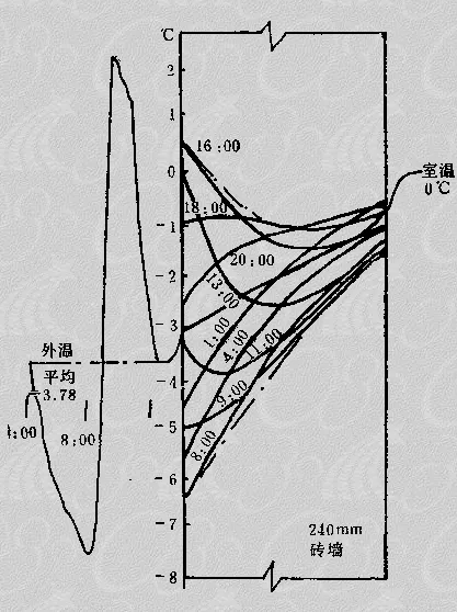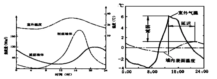 由于热惯性存在,通过围护结构的传热量和温度的波动幅度与外扰波动幅度之间存在衰减和延迟的关系。衰减和滞后的程度取决于围护结构的蓄热能力。