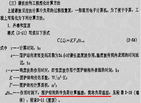 ①空调因围护结构传热负荷计算原理:按不稳定传热过程计算,因此,须知夏季空调室外计算日平均温度和逐时温度