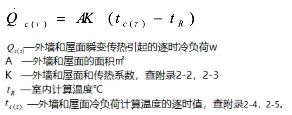 传热冷负荷,可按式(2-5)计算。