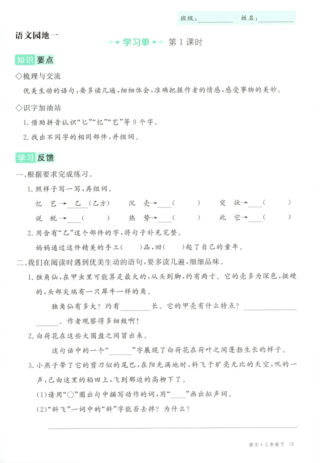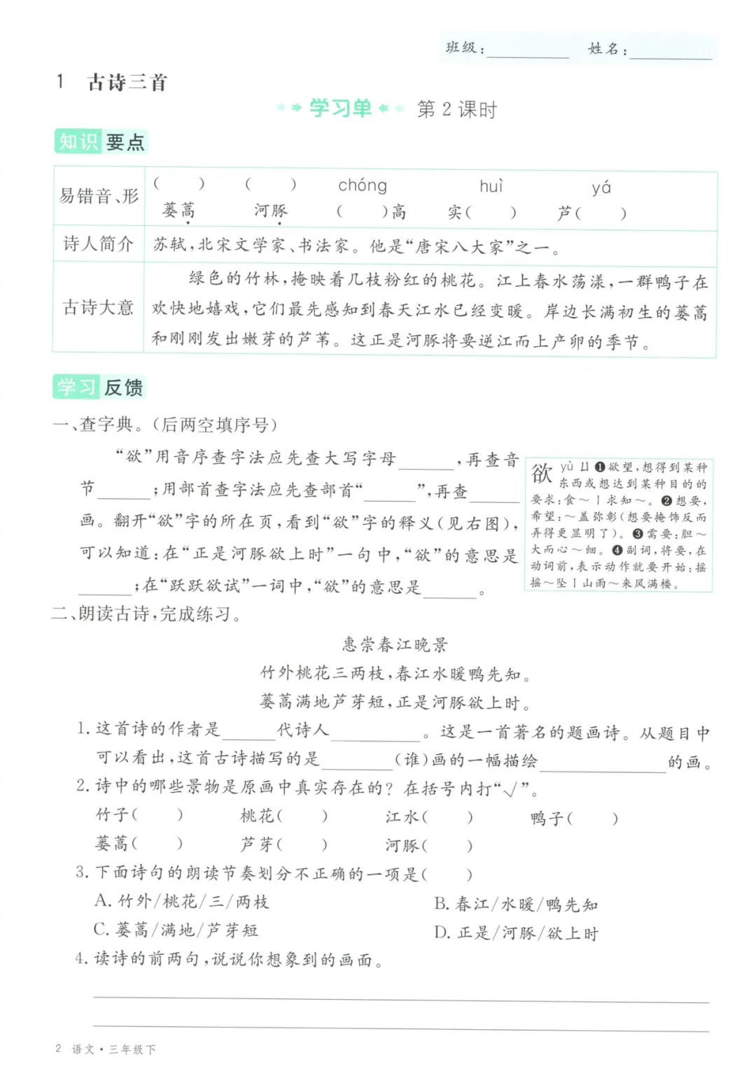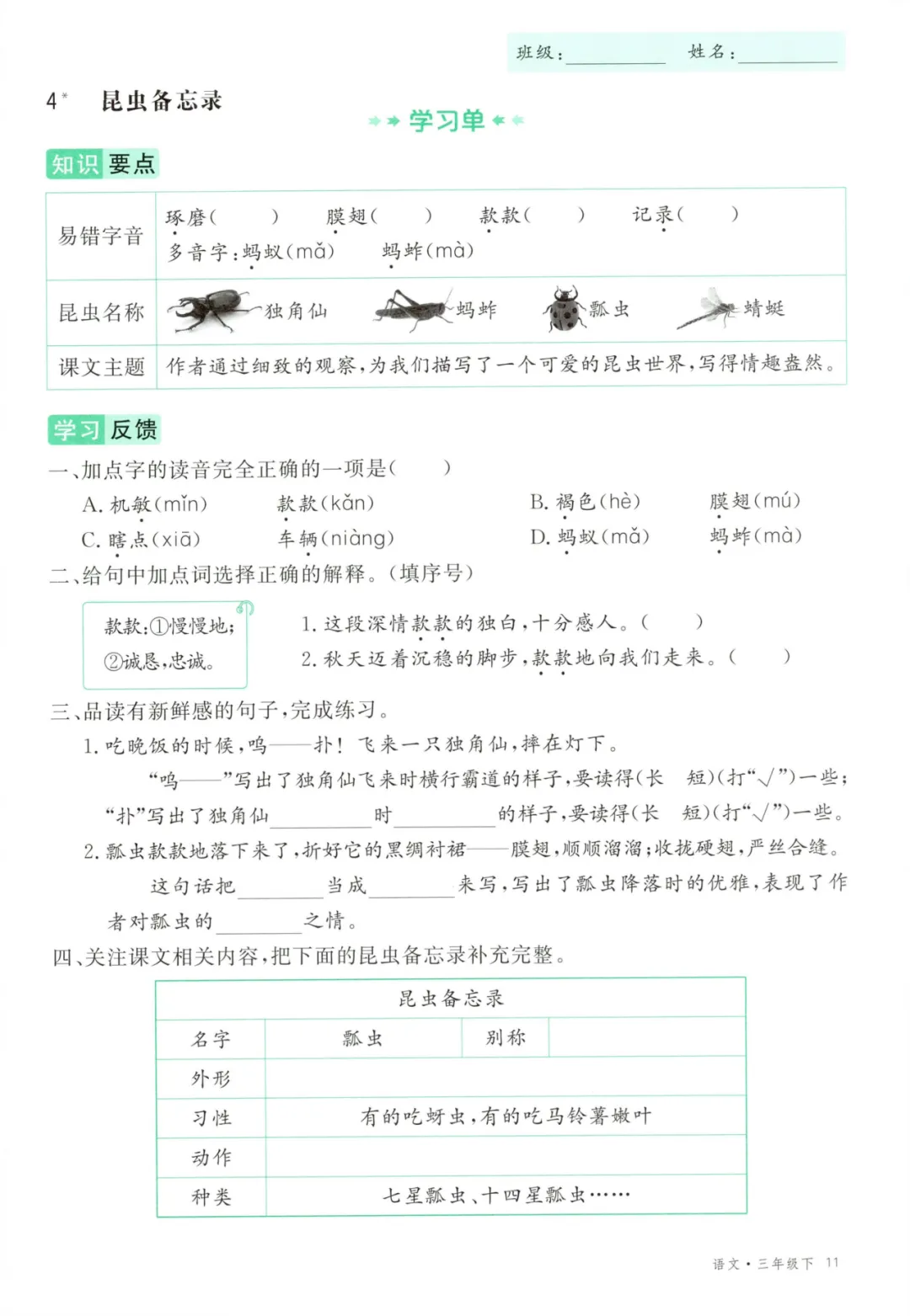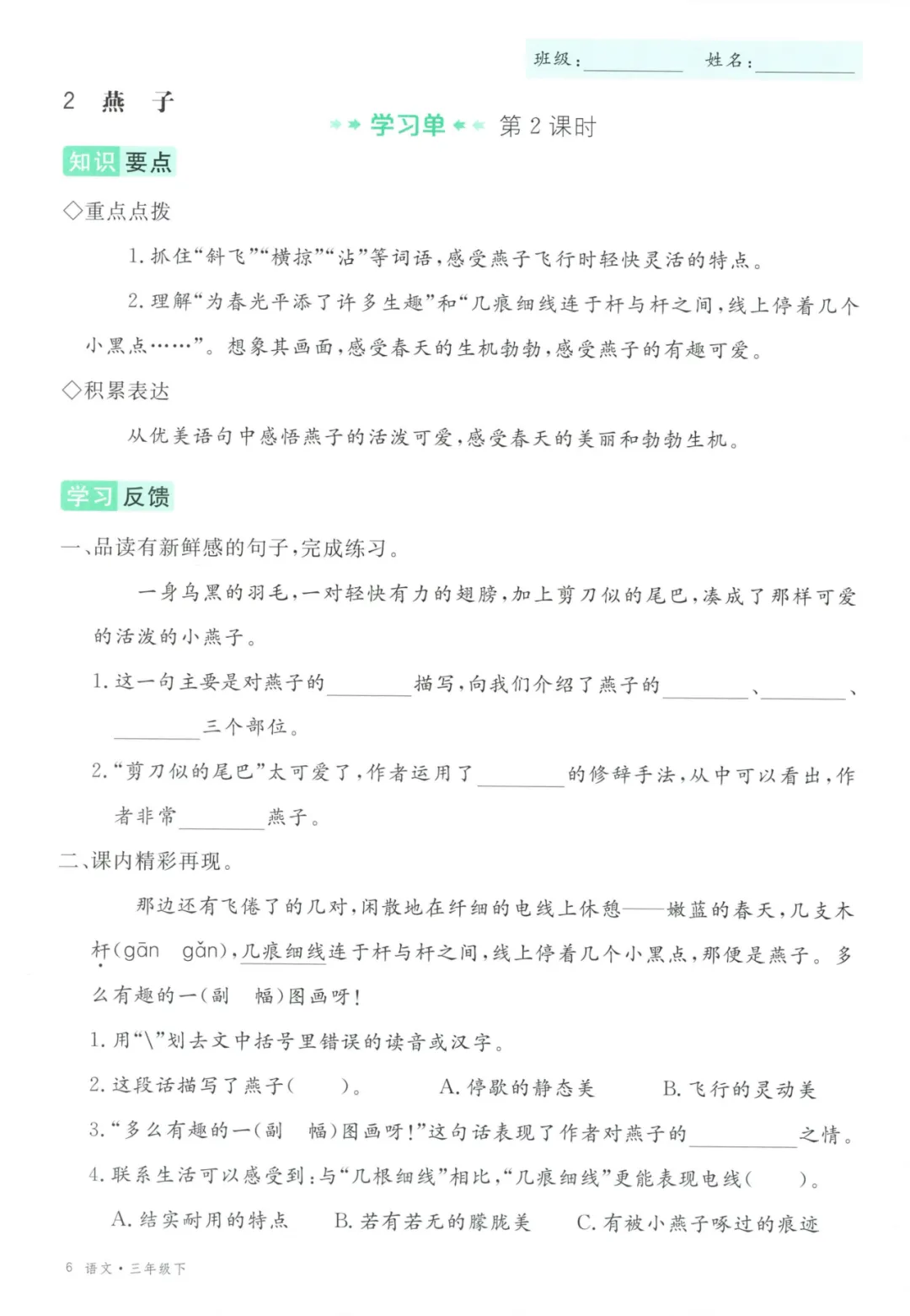 26春1-6年级全册学习单《部编版》,电子版可下载打印
