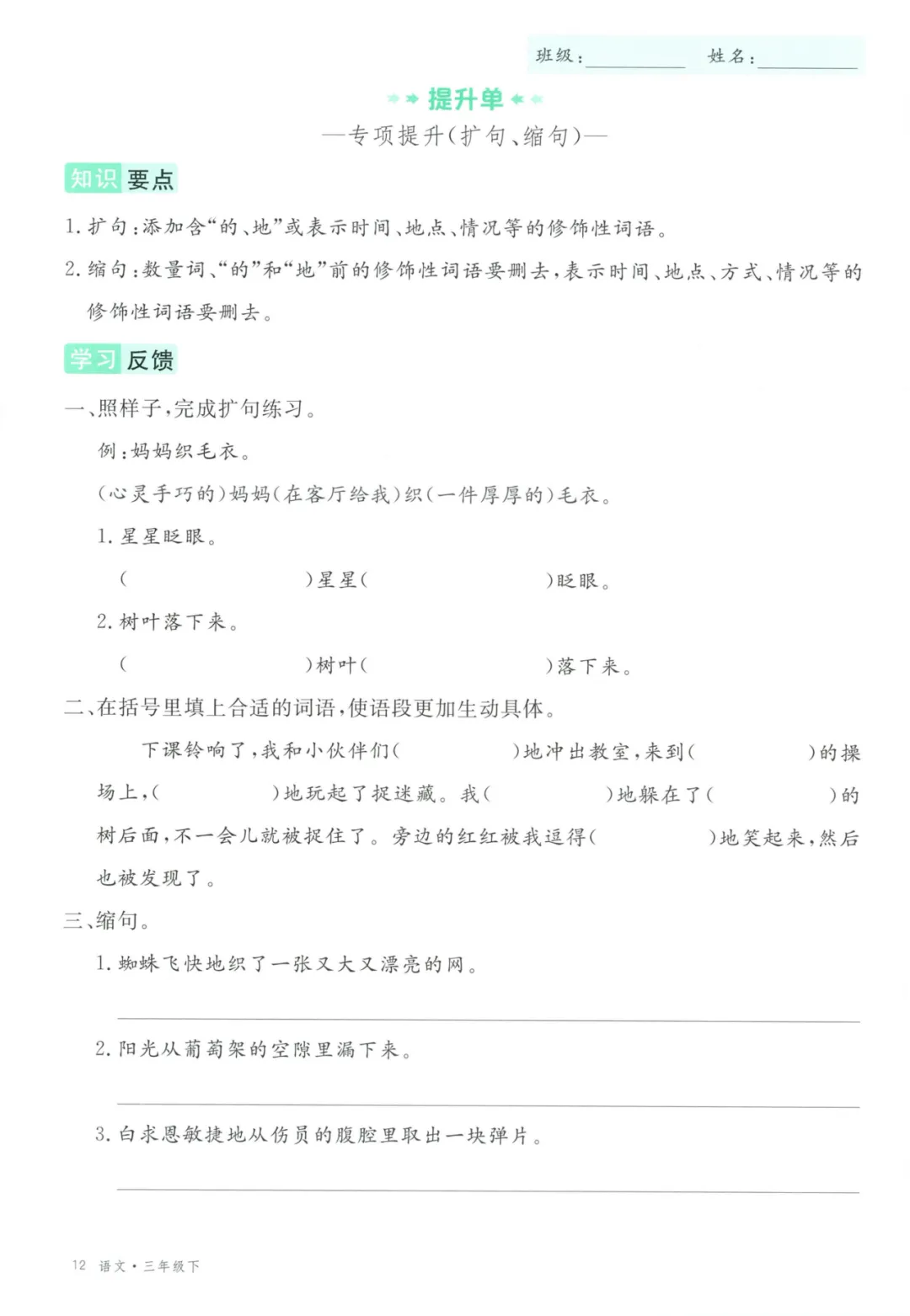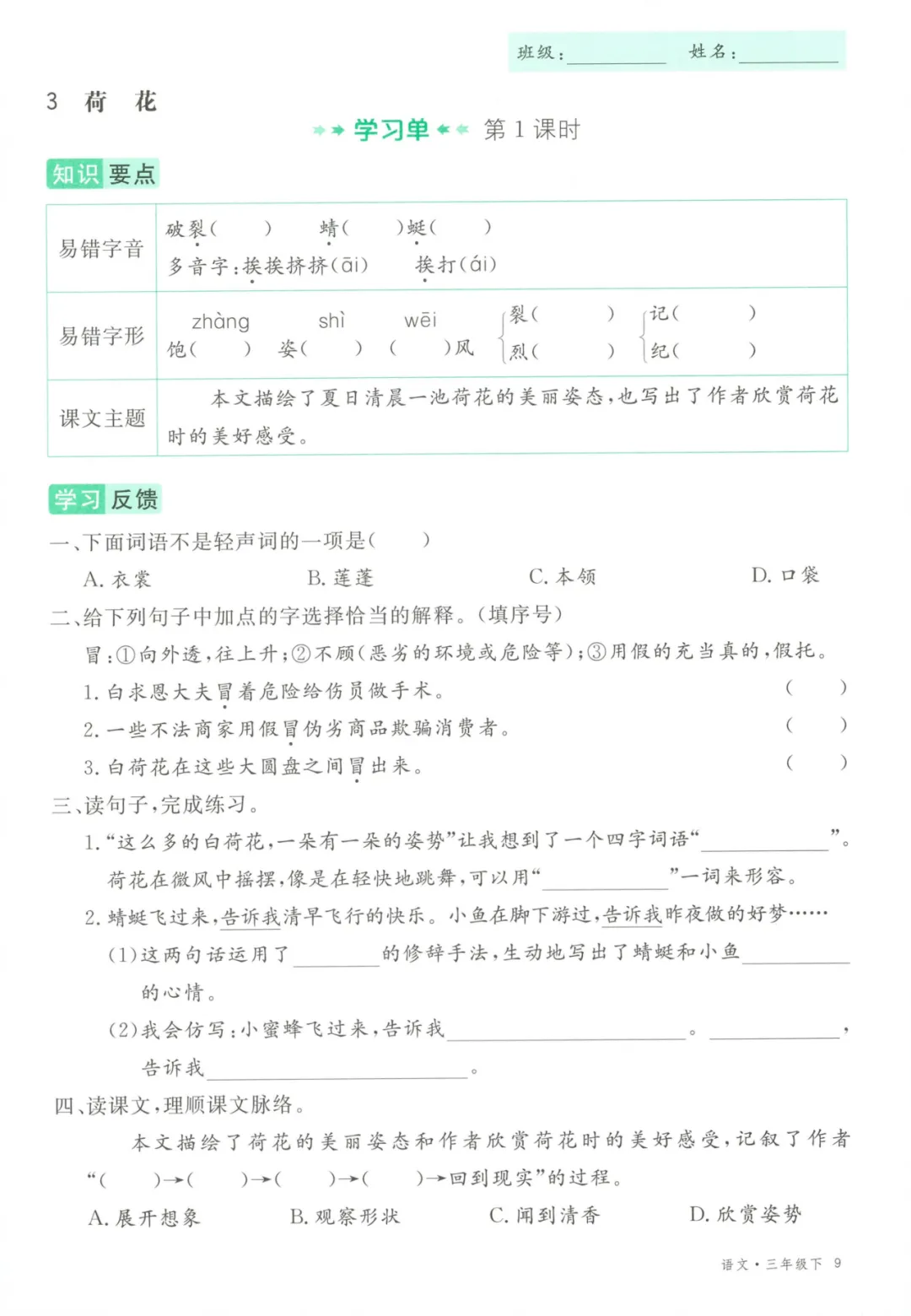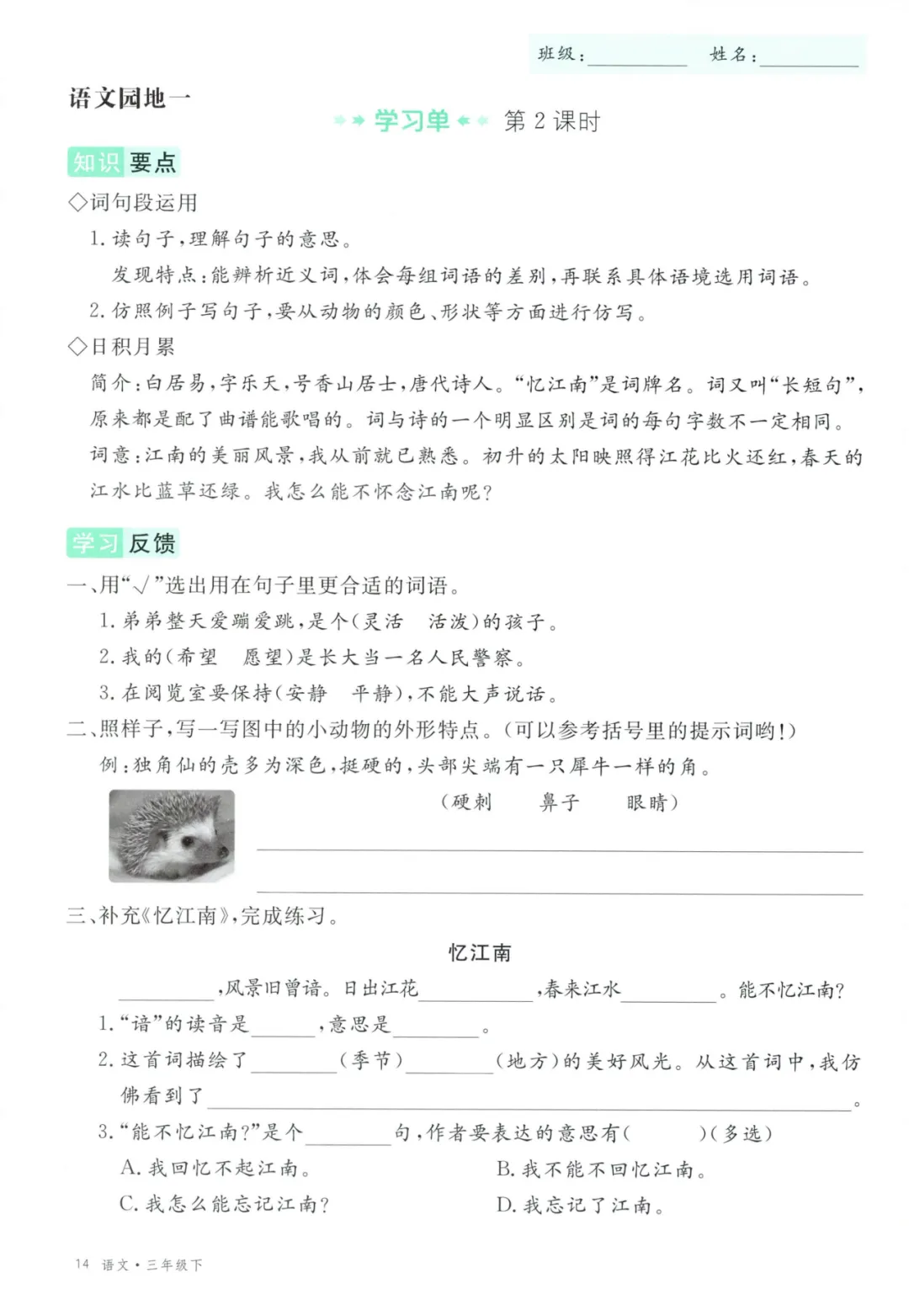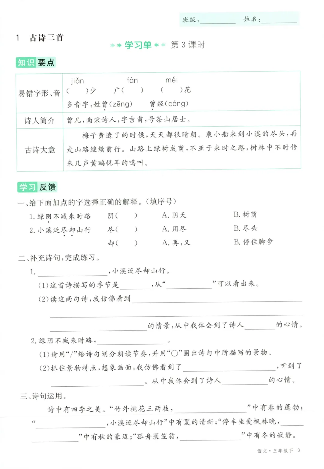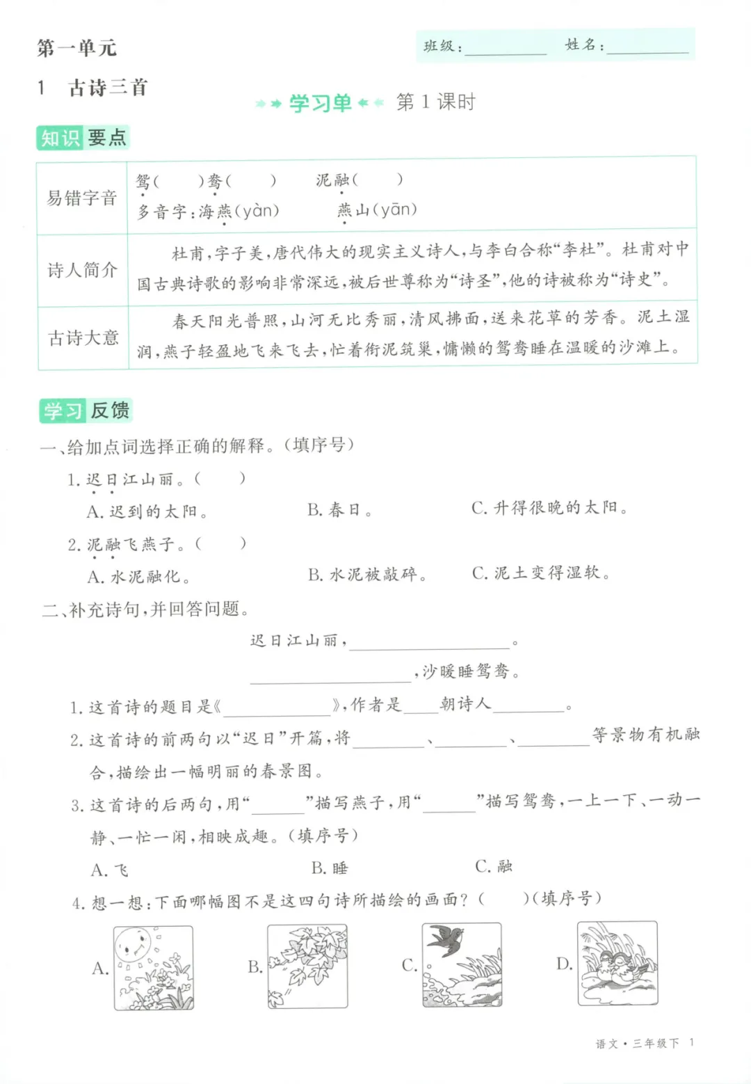 26春1-6年级全册学习单《部编版》,电子版可下载打印