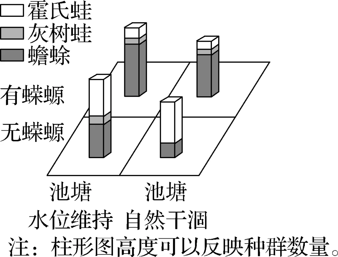 3.(2024·南通海安中学)如图表示两种生境下捕食者蝾螈对池塘中霍氏蛙、灰树蛙、蟾蜍种群数量的影响。下列分析正确的是(C)