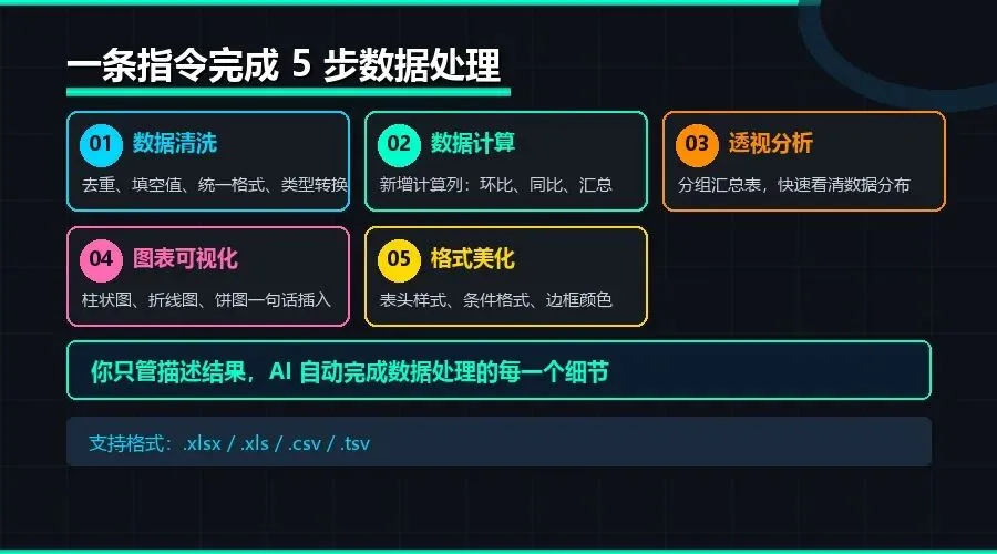 换句话说:你只管描述你要什么样的结果,数据处理的细节 AI 全包了。